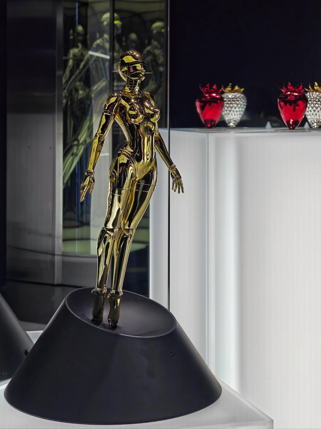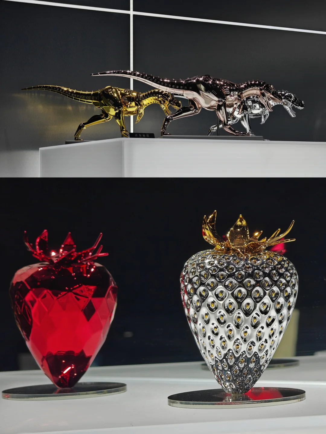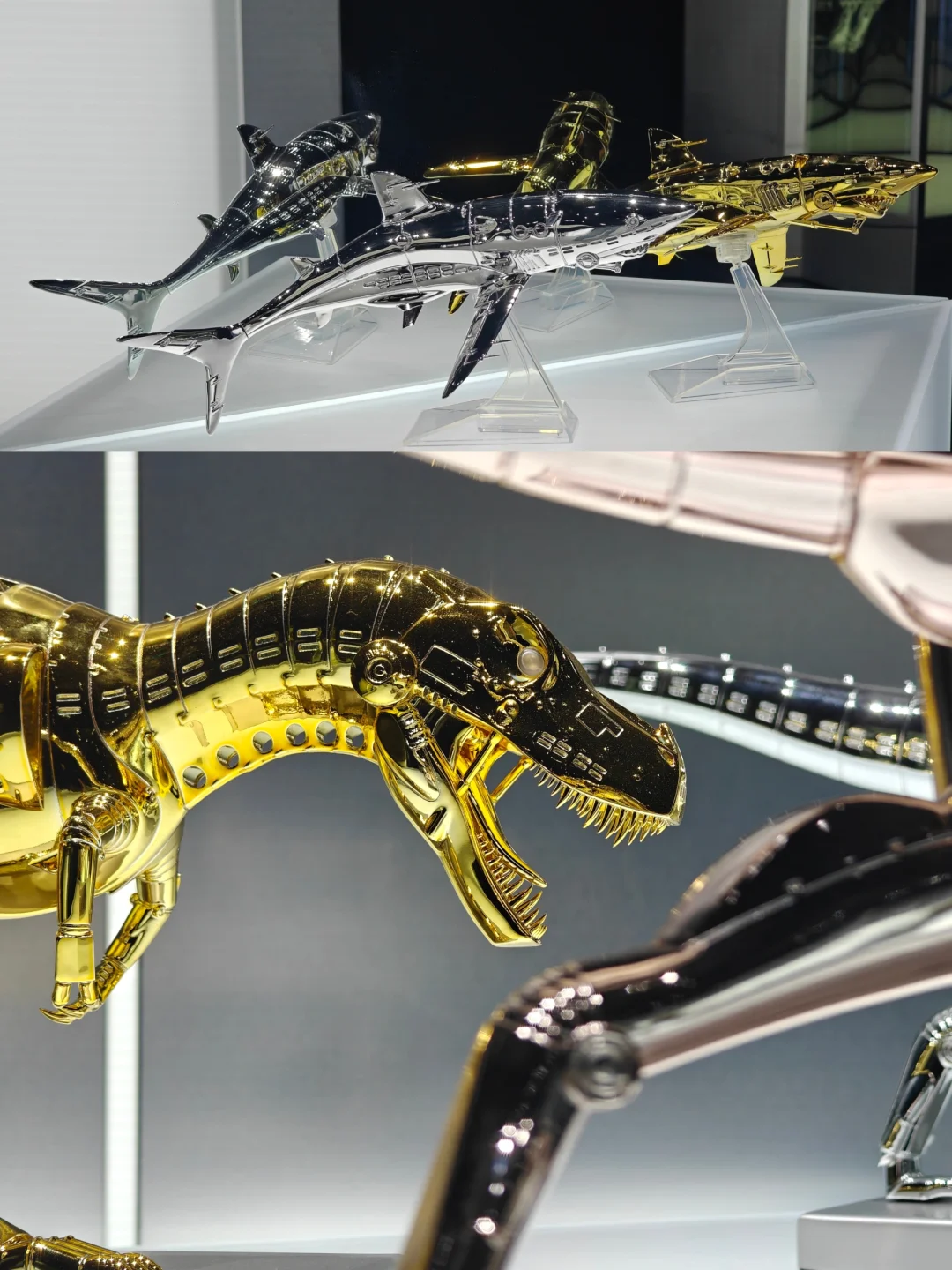 👟主题展区陈列有全球限量250体的草莓雕塑、2025新品首发的Sexy Robot Floating Type II(1/4 scale,Silver)、Sexy Robot Floating(1/4 scale,Gold )、Spoce Traveler(1/8 scale)、T-rex和Shark系列,还有xVESSEL与空山基的联名系列