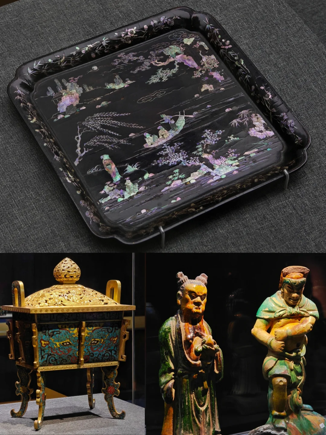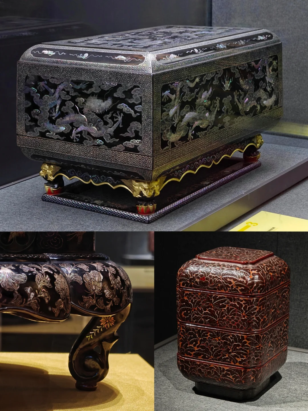 🎨景泰蓝、剔犀、剔红、剔黑、黑漆描金、嵌螺钿、款彩等技艺在明代均达到了巅峰