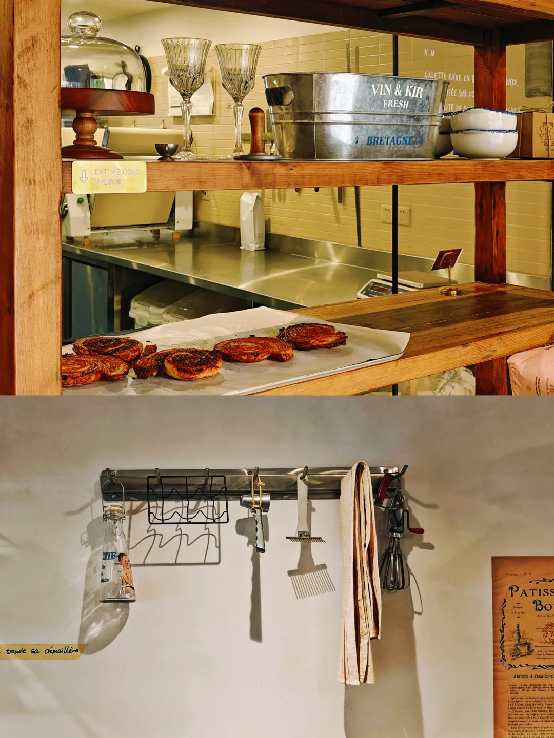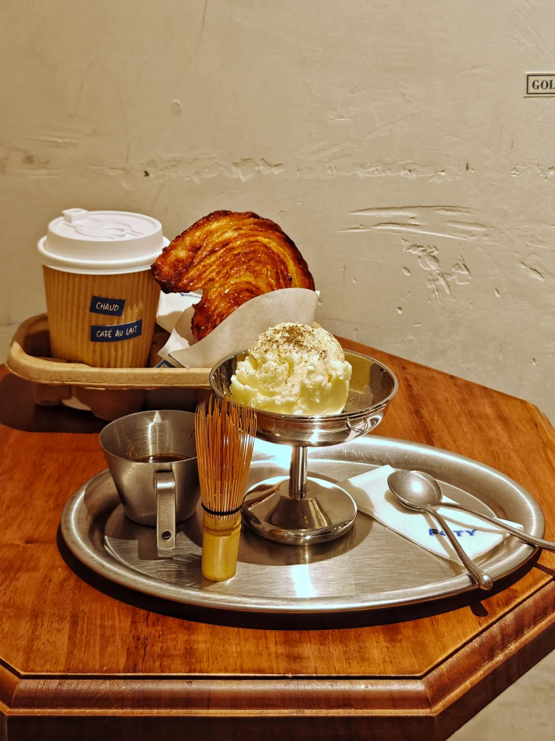 🍞走出店外,右侧有间小小的复古风咖啡烘焙店FOTY,据说是倍乐和Luneurs联合开的,只卖可曼卷和品种不多的咖啡饮品。全透明的厨房设计,大家可以清楚的看见饮品和面包的制作过程。尝试了焙茶佳朵意外地很不错呢!可曼卷有多种口味的,收银处有试吃,感觉还是肉桂核桃味的蕞好吃😋整体店面风格体现手工感和松弛感,据说这就是所谓的韩系风格。确实,比起隔壁,我就更喜欢这家店更温馨自在的风格,感觉在这儿吃个下午茶更放松。