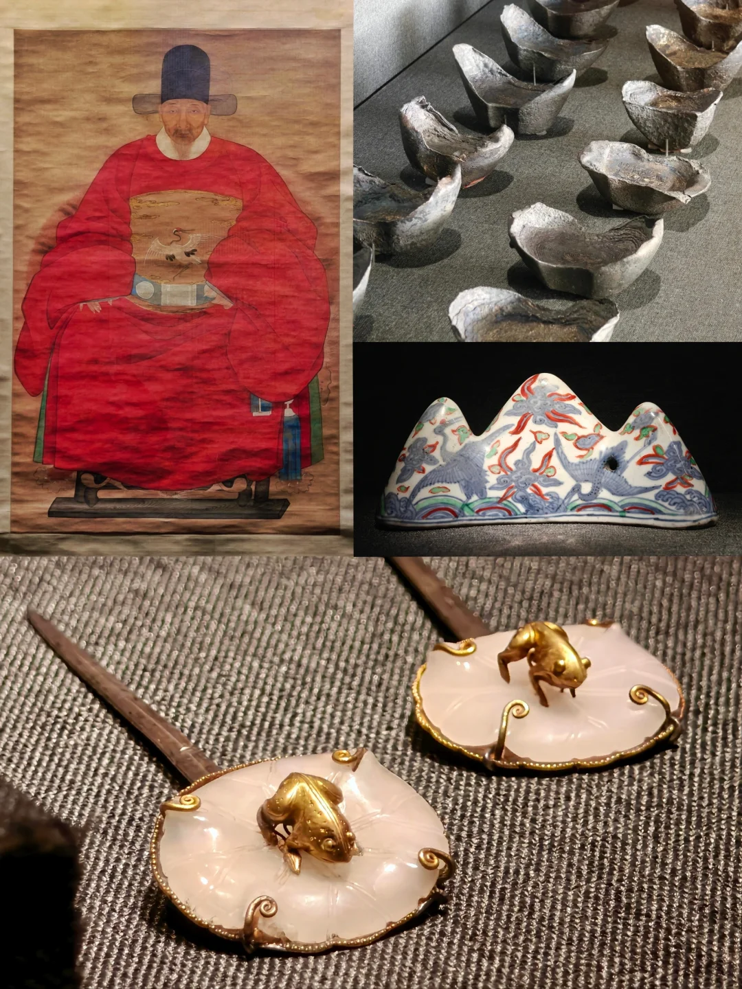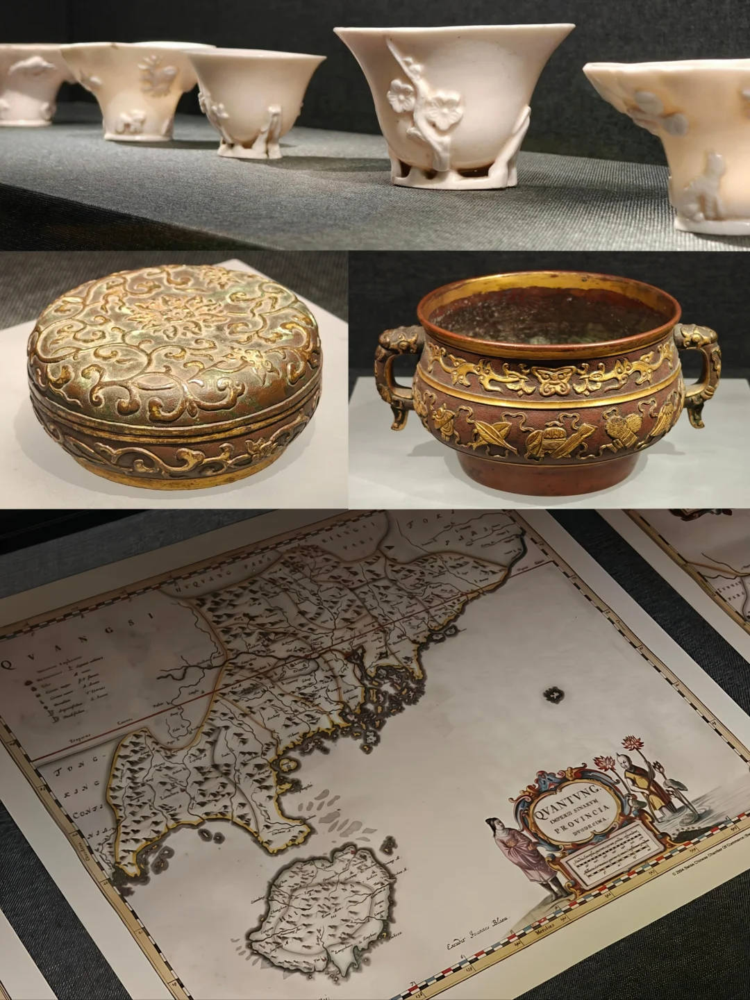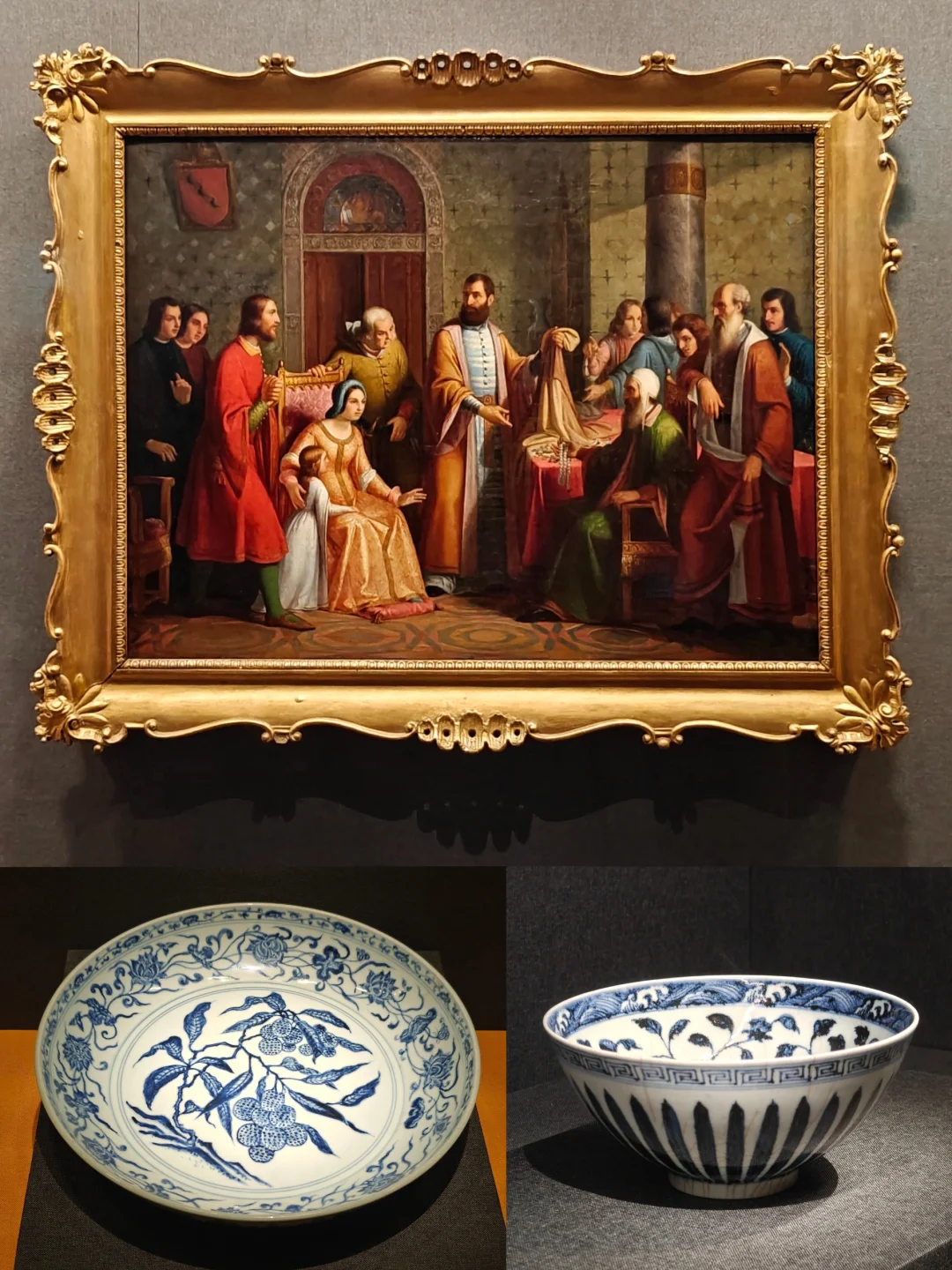 镇馆之宝——釉里红岁寒三友图梅瓶,应为永乐帝赏赐安成公主之物。明初的釉里红发色较灰暗,器型硕大,烧造工艺要求高。有盖之同类器物仅此一件且保存完整,殊为珍贵。