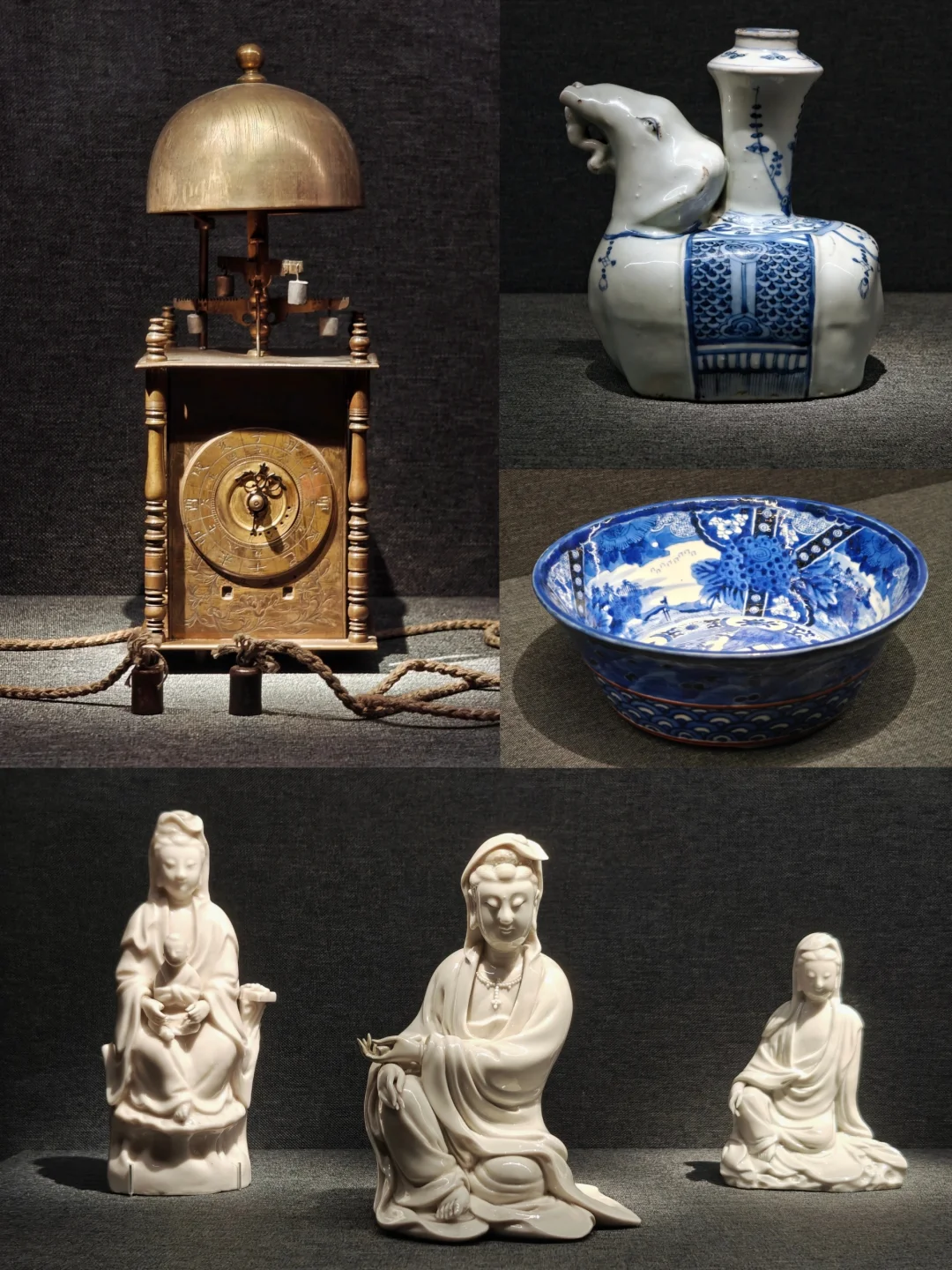 明朝时期,东南亚、南亚和西亚等海上邻国曾多次向中国进贡大象,这些大象通常被用于参与朝廷的各种典礼和庆典、军事或运输等场合。展览中有明代白釉象鼻三足炉、铜象尊、象纹琉璃构件等相关展品。