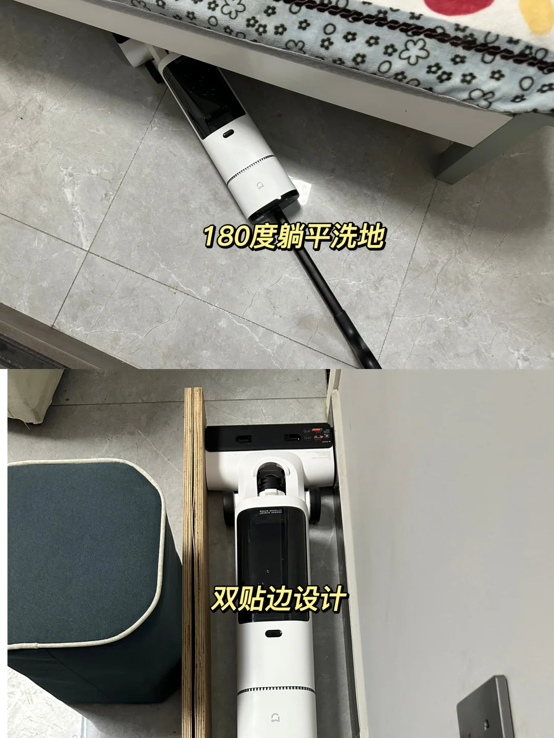 2⃣180°躺平洗地和双贴边设计,卫生死角不费力