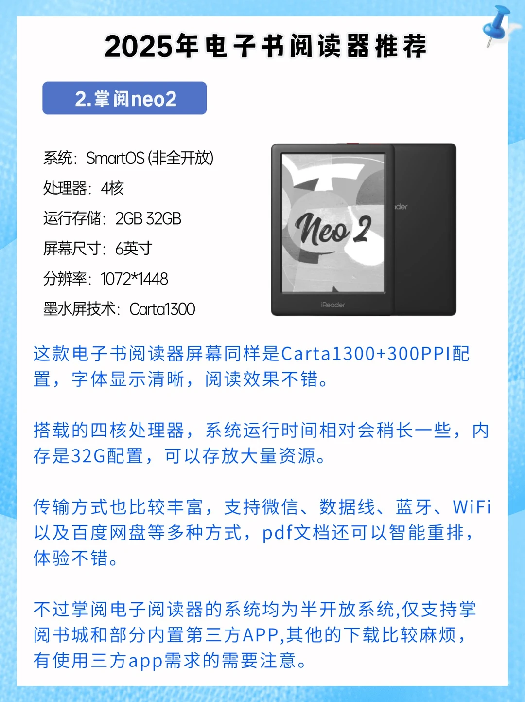 👉如果不介意封闭系统的话,可以看看掌阅这两款,喜欢长续航可以看看汉王clear6 Pro。