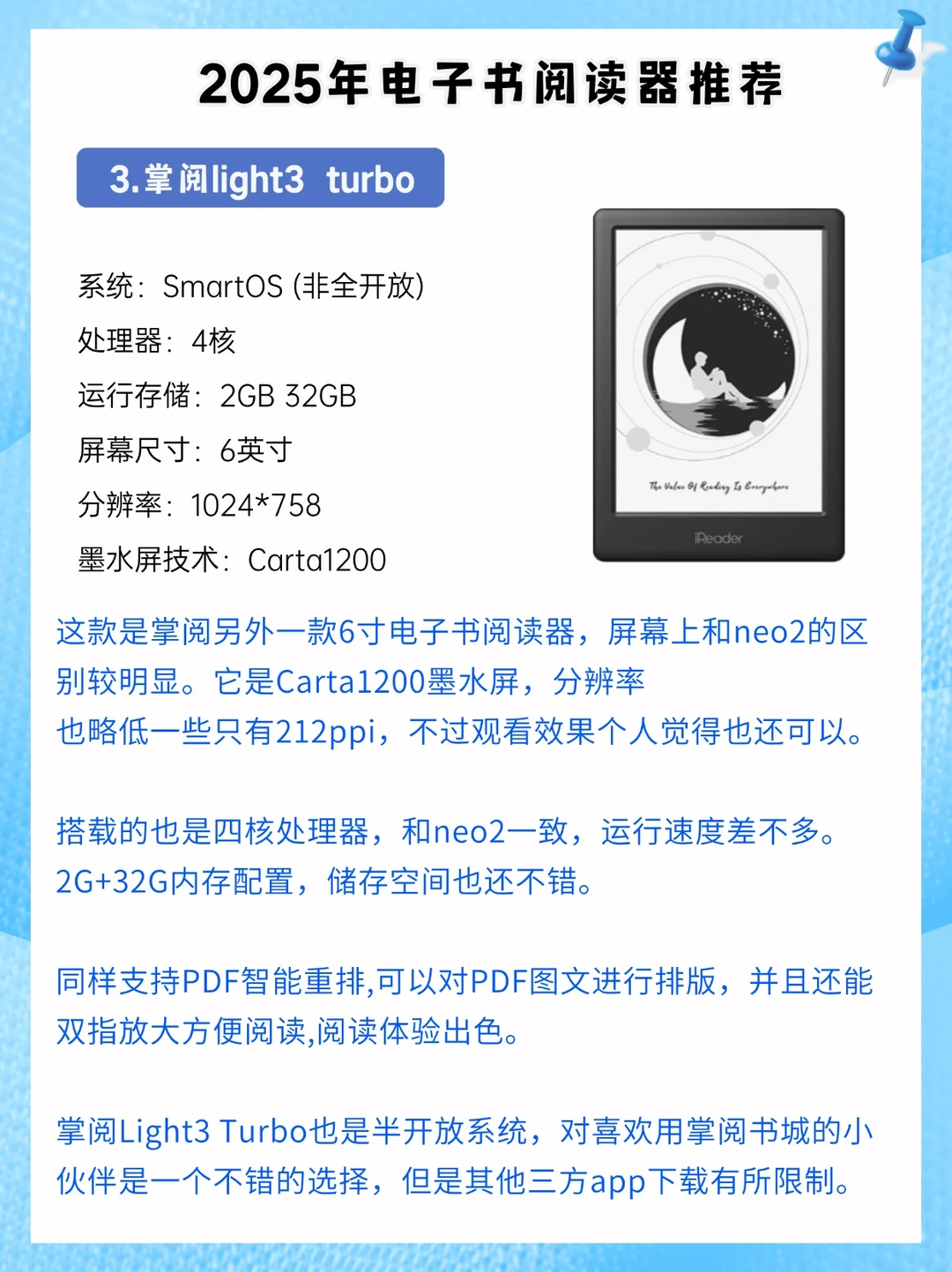 根据以上这几点进行挑选,大家在购买阅读器时基本就不会踩坑了。