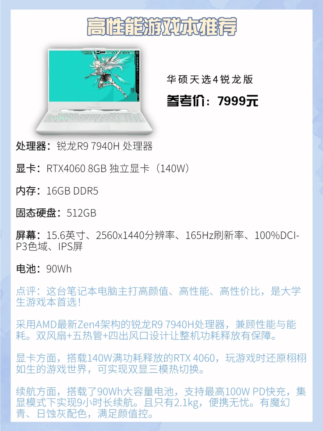 这台笔记本电脑主打高颜值、高性能、高性价比,是大学生游戏本首选!