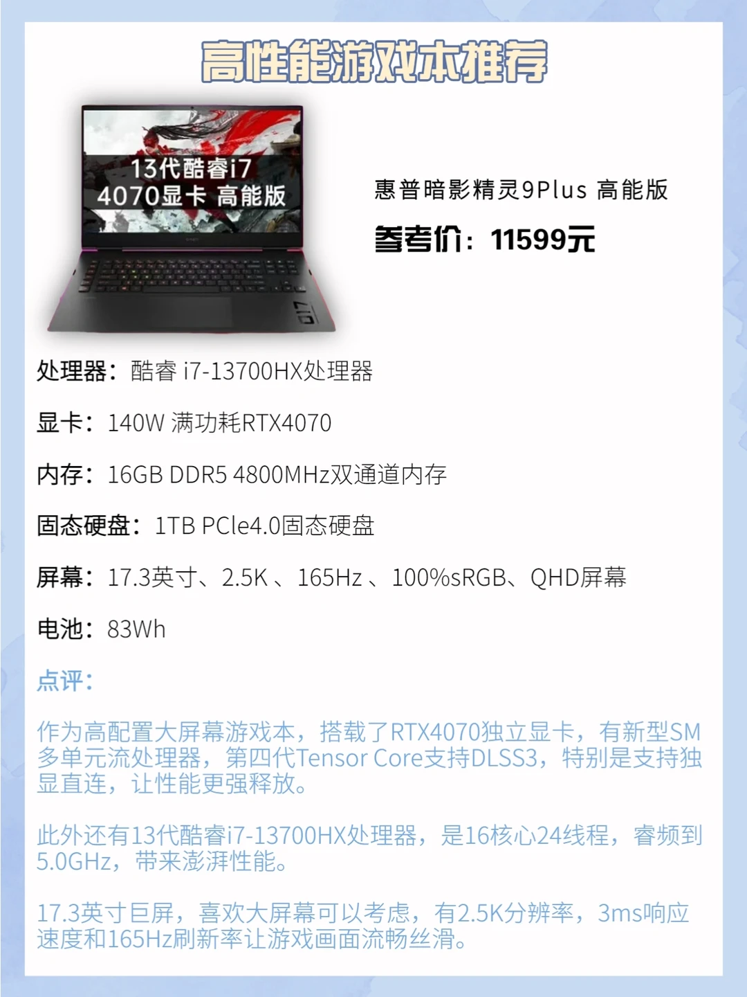 4️⃣惠普暗影精灵9Plus 高能版