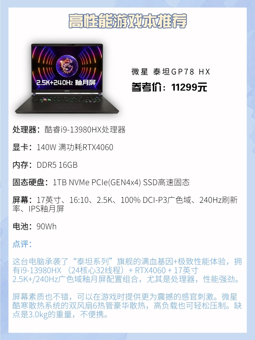 3️⃣微星 泰坦GP78 HX