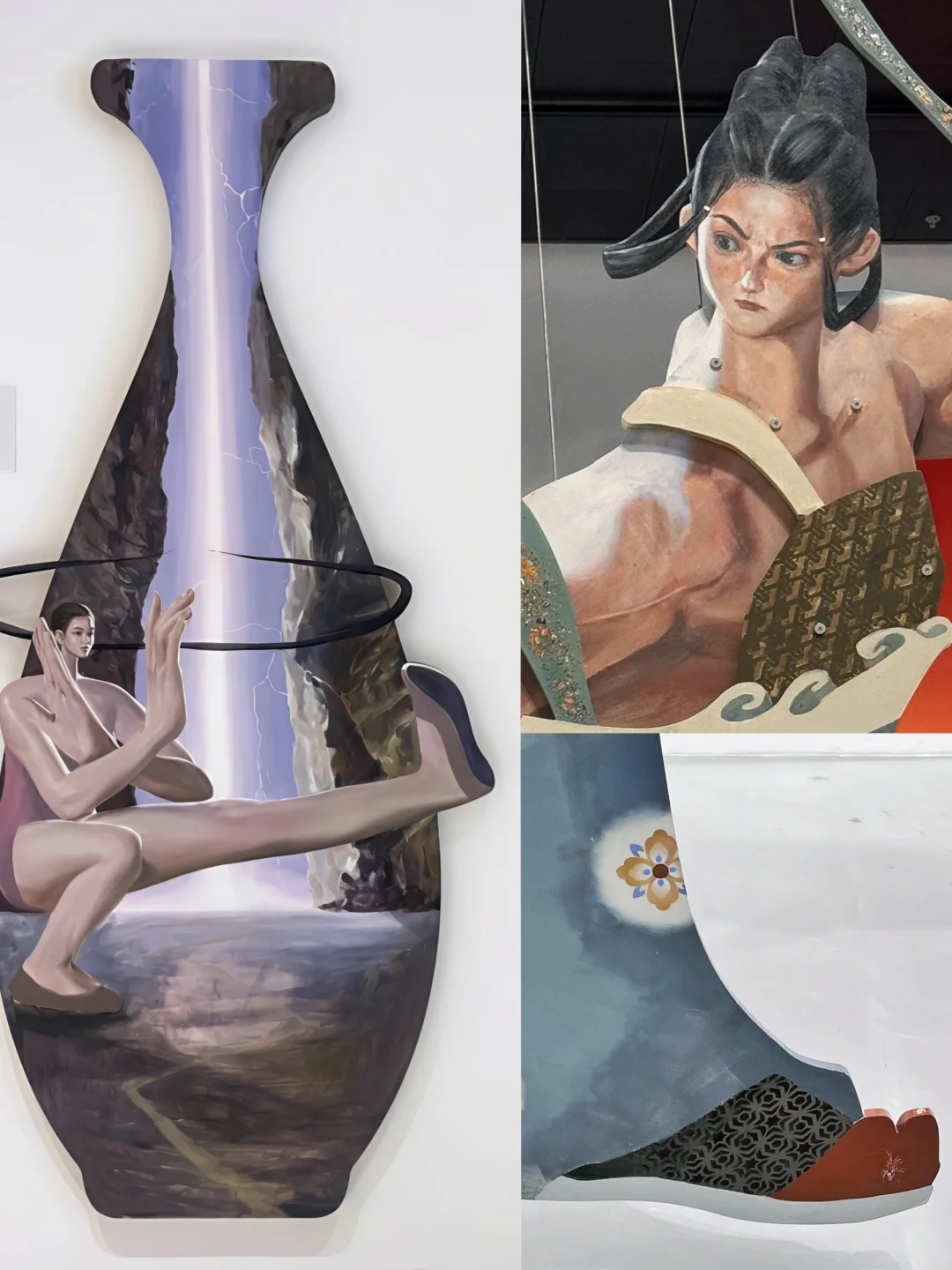 🖼️8件作品有着纪念碑式的巨大尺度,给人强烈的视觉冲击,观众必须仰望这些女侠形象。
