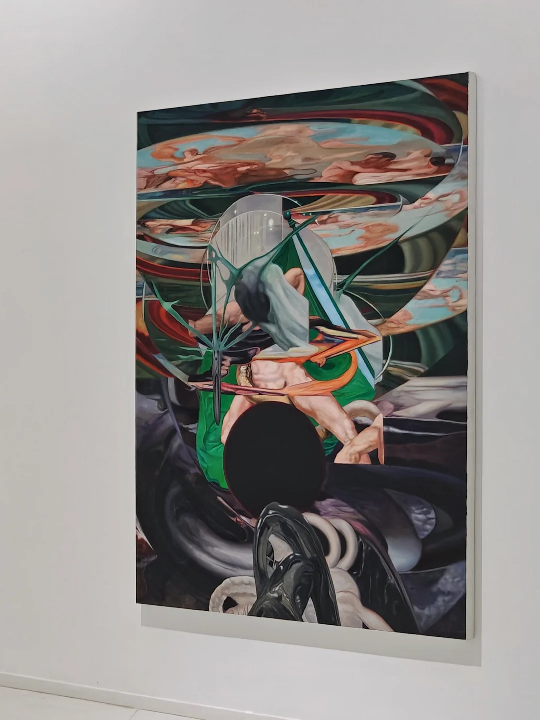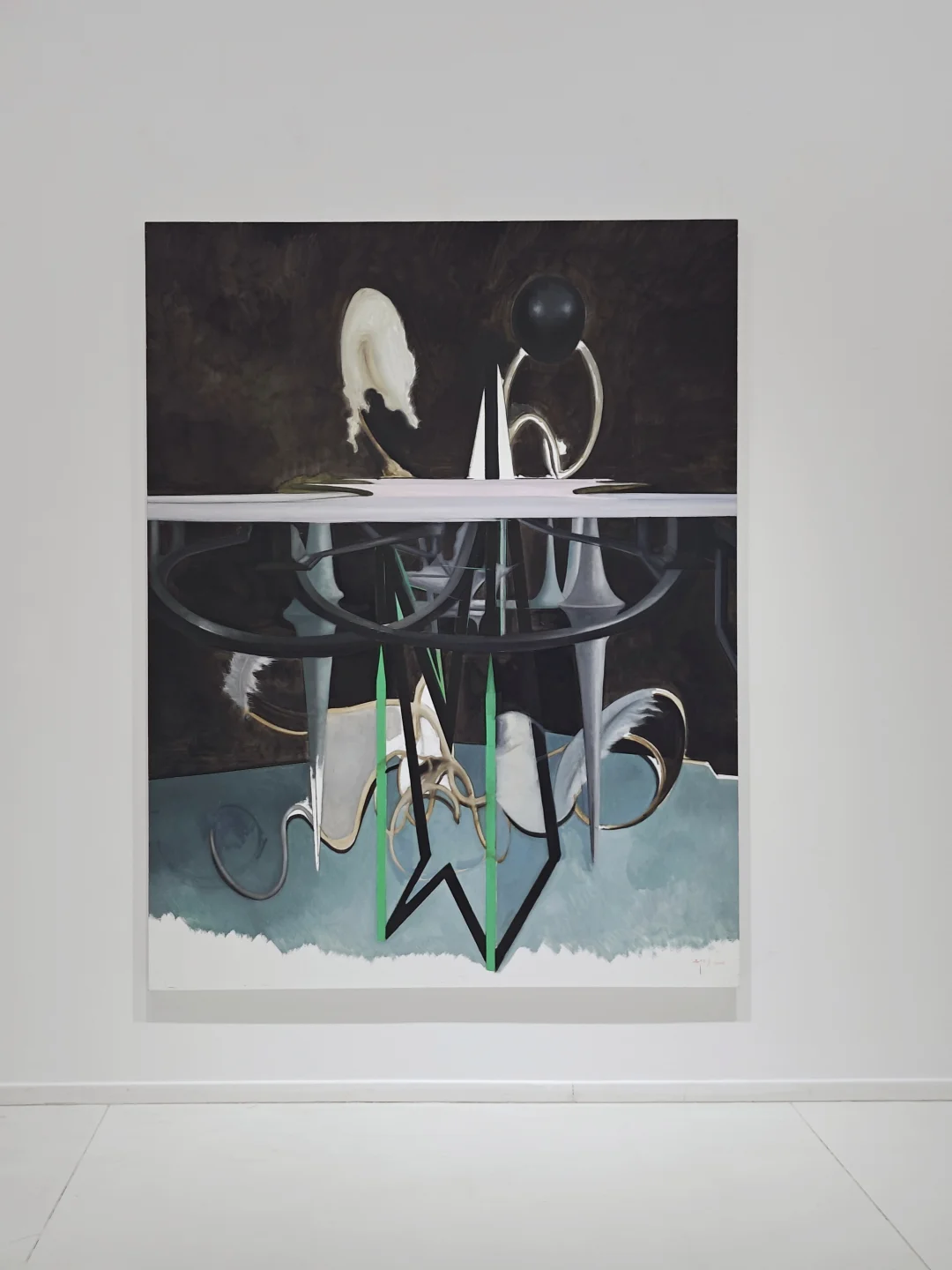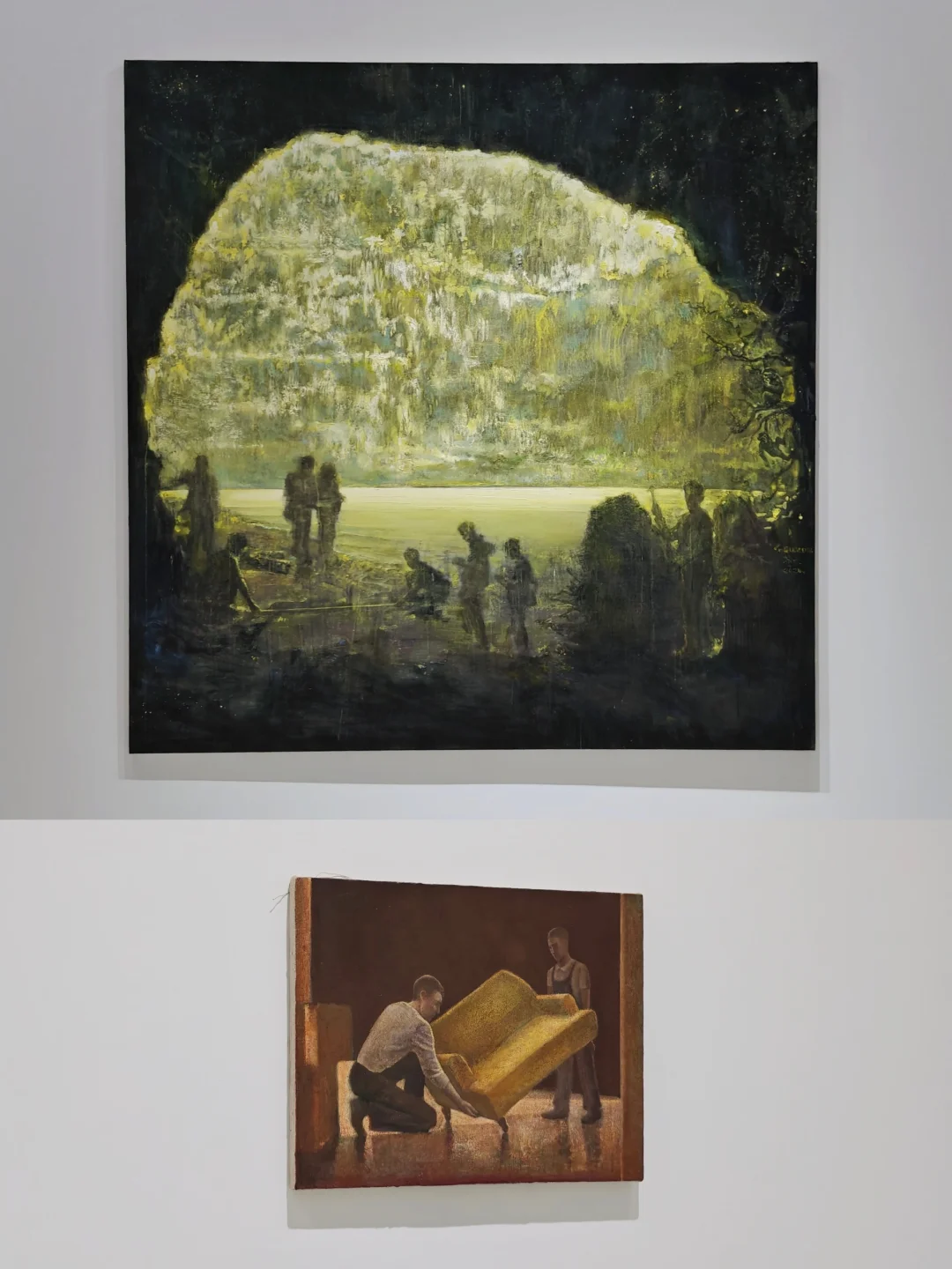 🖼️展览同名作品《绿洞》以“洞口”象征时空裂隙,绿色光芒隐喻未知力量,探讨人类在自然与历史中的渺小与对自我、世界的持续探寻。