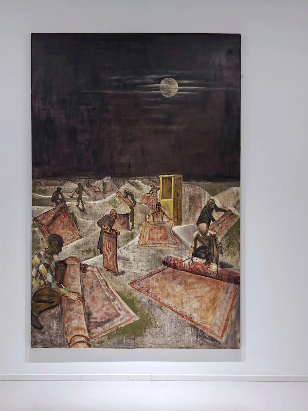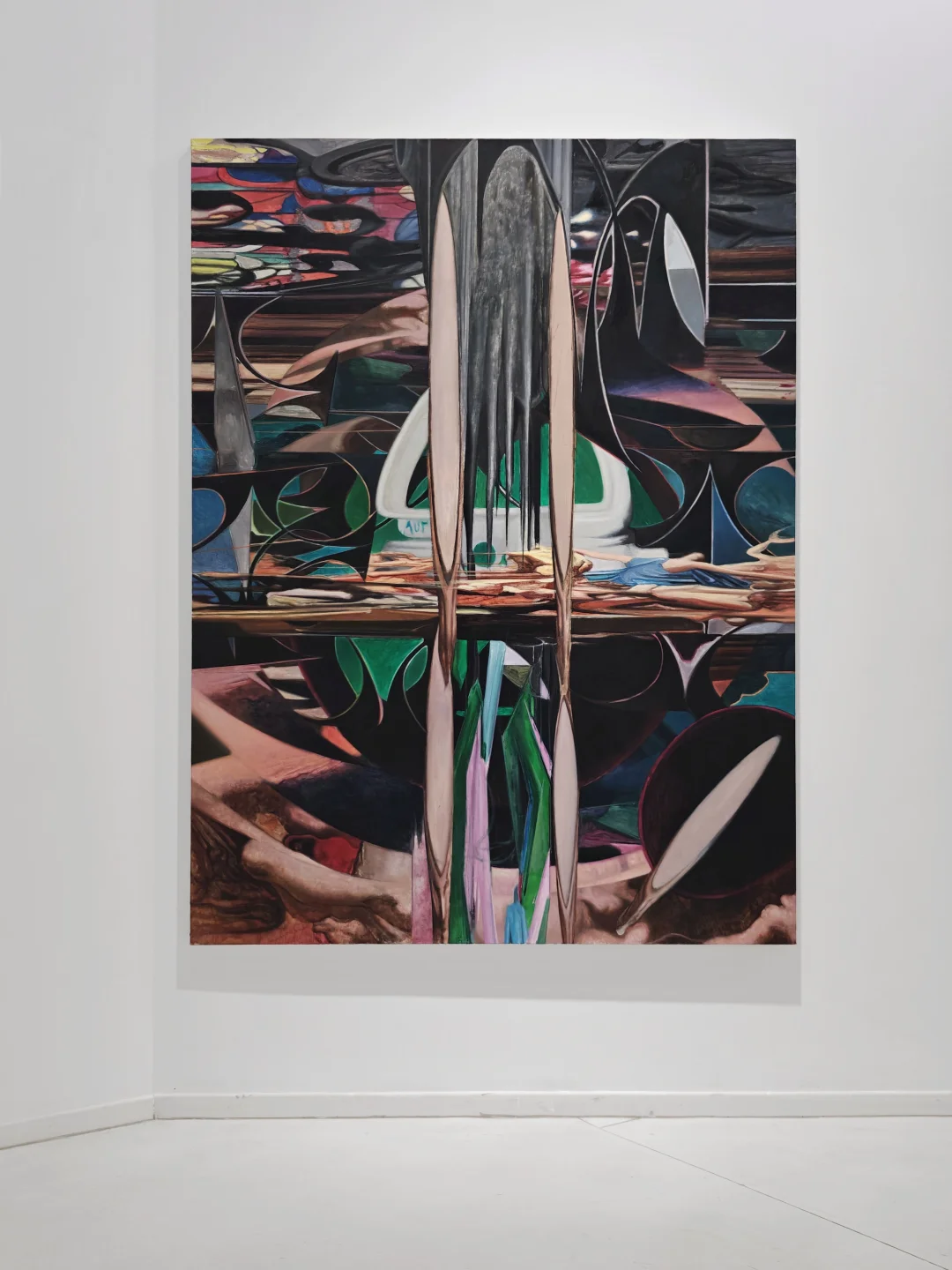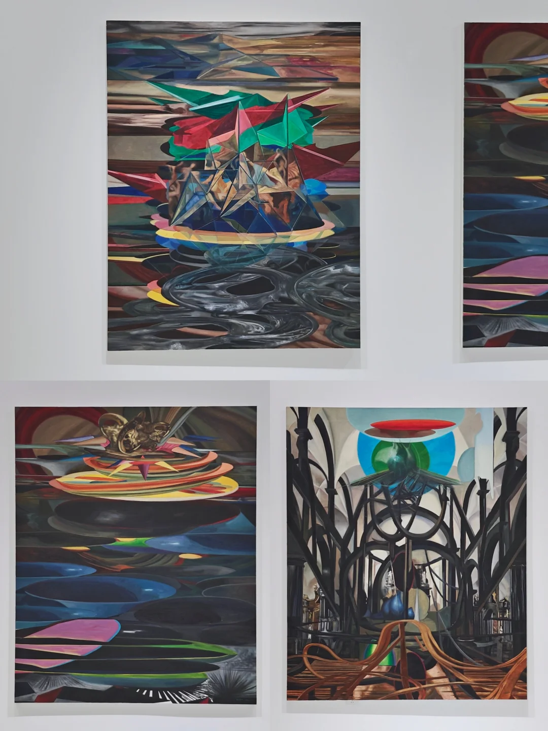 🖼️与之对应的《考古》系列将时间的线性逻辑拆解为层层堆砌的颜料地形,艺术家特殊的绘画手法变相模拟着考古现场。《天方夜谭》系列则融合阿拉伯纹样与赛博格意象,创造视觉叙事迷宫,反叛确定性知识。