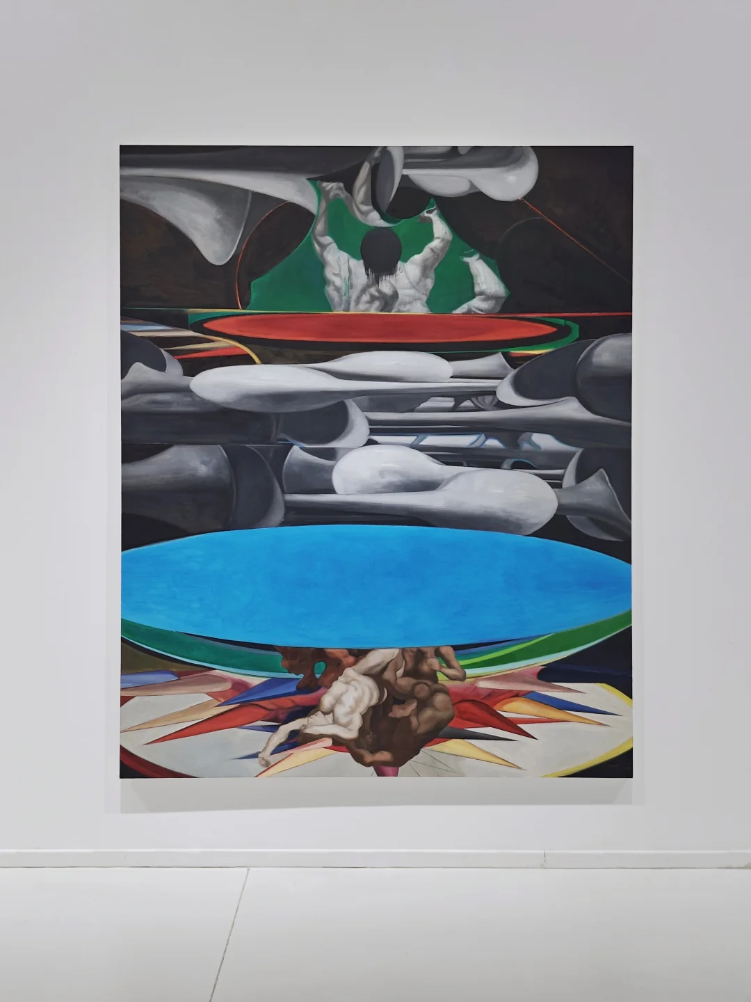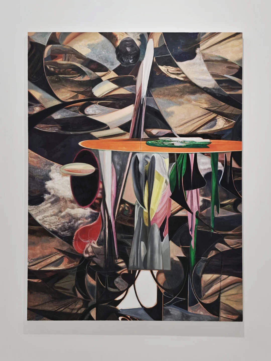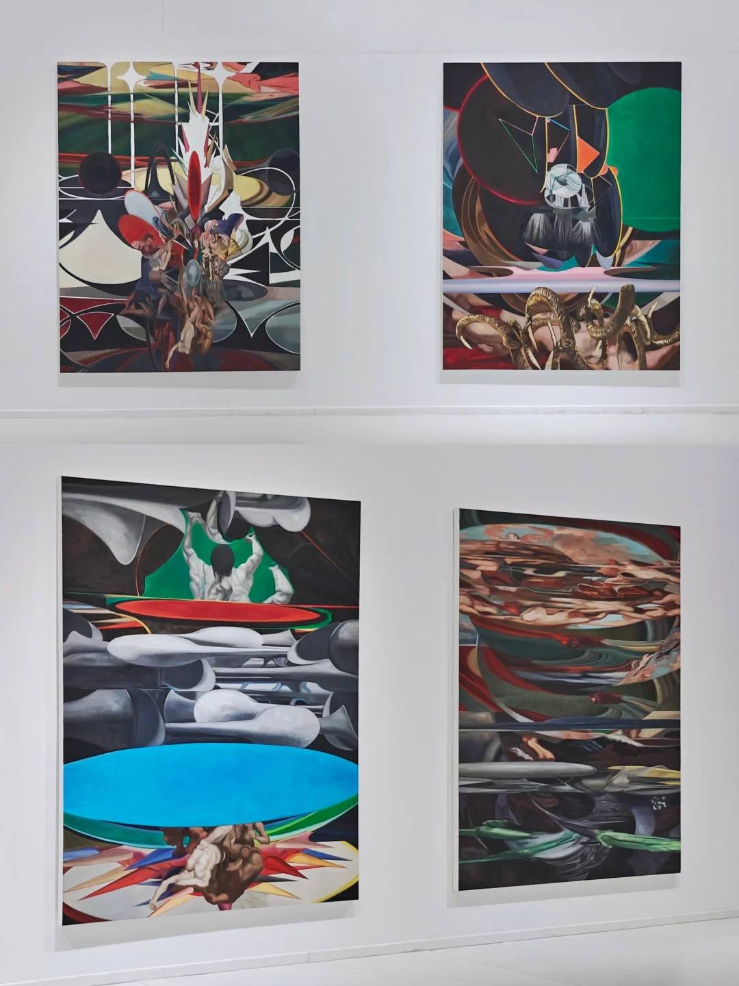 🖼️与之对应的《考古》系列将时间的线性逻辑拆解为层层堆砌的颜料地形,艺术家特殊的绘画手法变相模拟着考古现场。《天方夜谭》系列则融合阿拉伯纹样与赛博格意象,创造视觉叙事迷宫,反叛确定性知识。