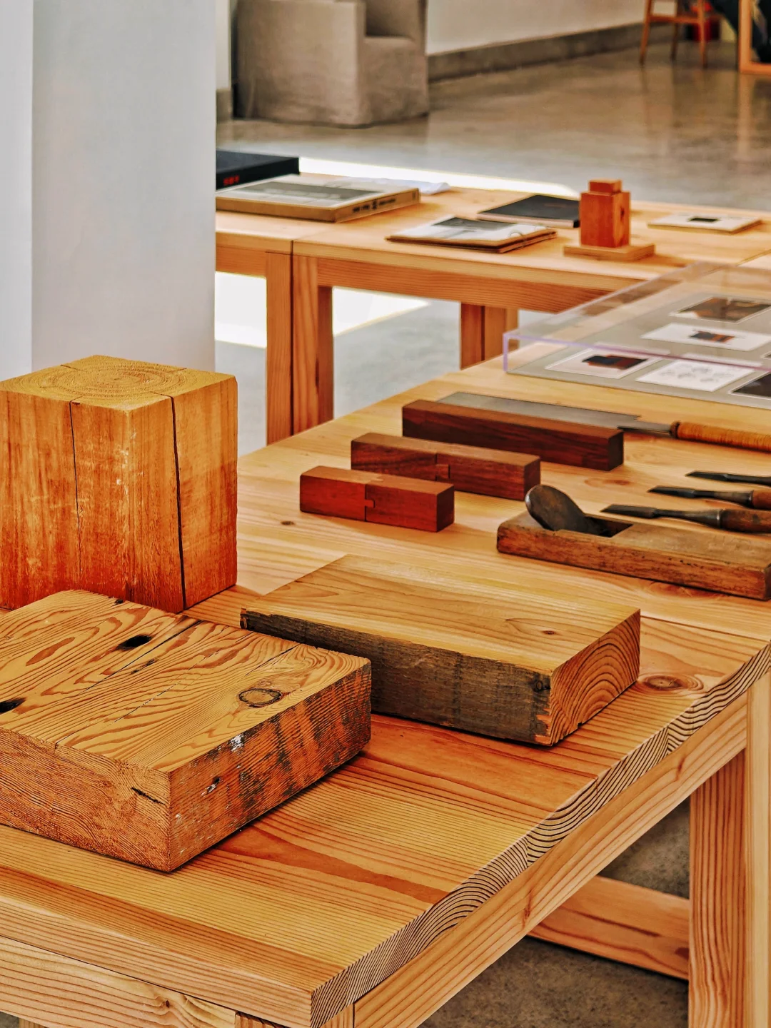 🛠️长桌围合成一个矩阵,展示了书籍、文献、工具等,沉浸式展示让人感觉仿佛来到创作者的工作空间,感受其创作时的思考逻辑和实验过程。