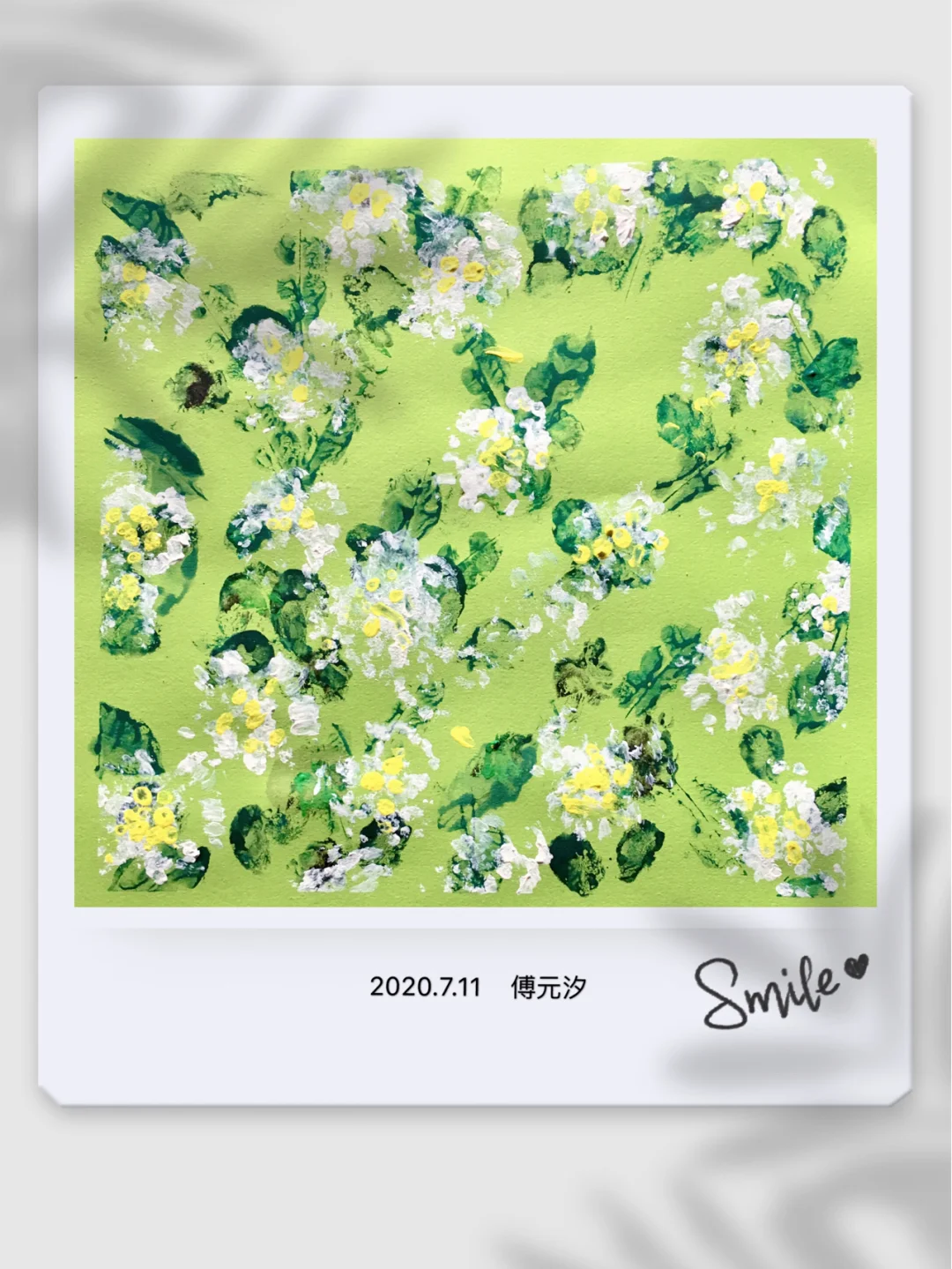 哥哥两岁四个月了,开始让他接触些画画的东西了。现在还太小,主要是培养点兴趣。这是我们家哥哥的第一幅跟第二幅水粉画,都是用各种小道具画的。第一张是用海绵印章加棉签,第二张是用树叶,水果泡沫网还有棉签完成的。