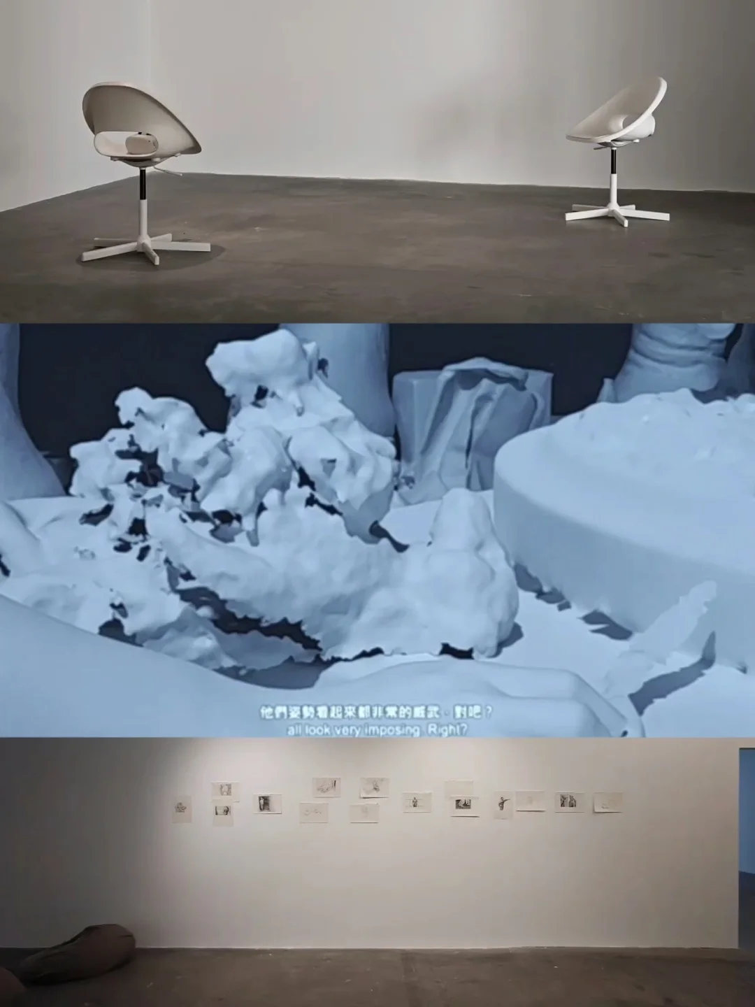 ⚪以极简空白与冷色调营造离散感,唤醒观众对空间的新感知,如用流水生财瀑布装置呼应家庭装饰画,暗含对“美好愿望”的消解。