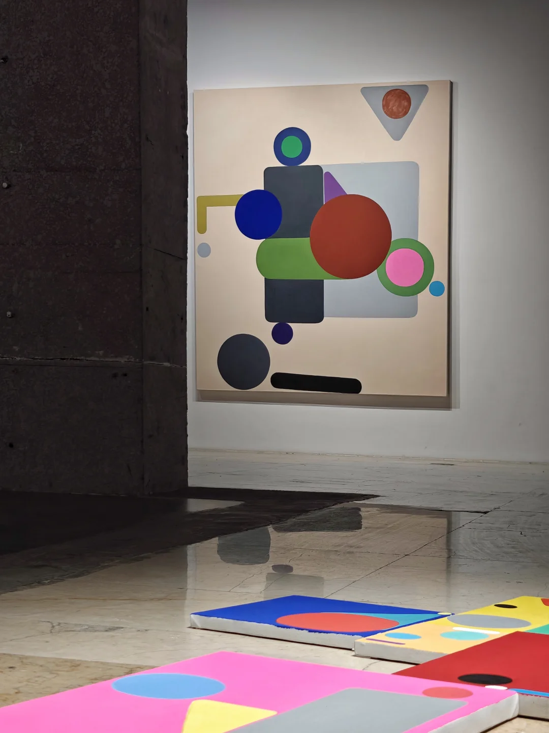 🔴采用平滑、无冲突的几何形态,使用现成工业化颜料,规避艺术家主观情感,强调设计系统本身。