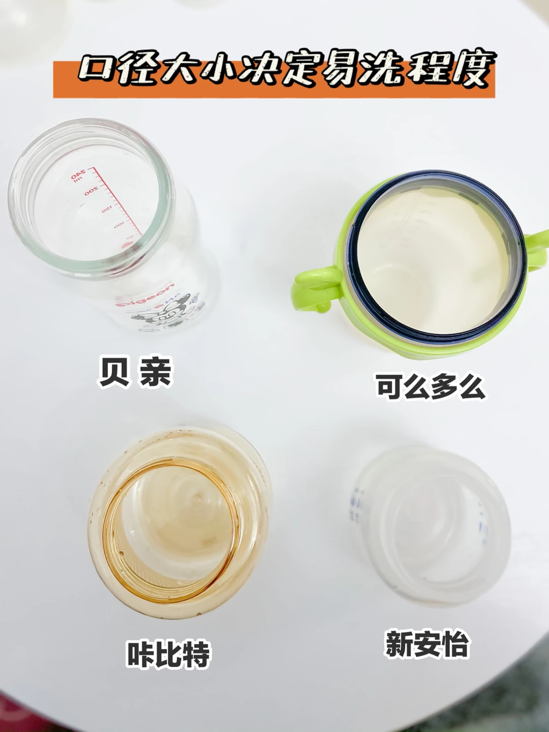 口径直接决定好不好清洗,还有好不好倒奶粉
