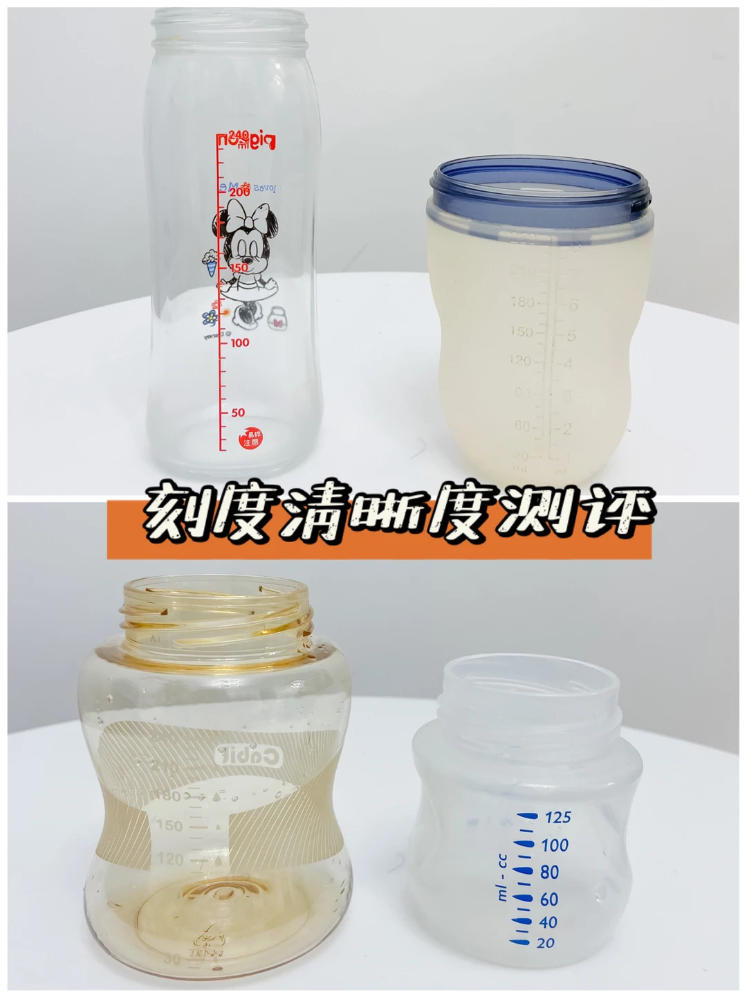 贝亲跟新安怡的都很清晰,咔比特的也还可以,可么多么是硅胶材质奶瓶刻度都不清晰,老人带娃的话,刻度不清晰就很不方便