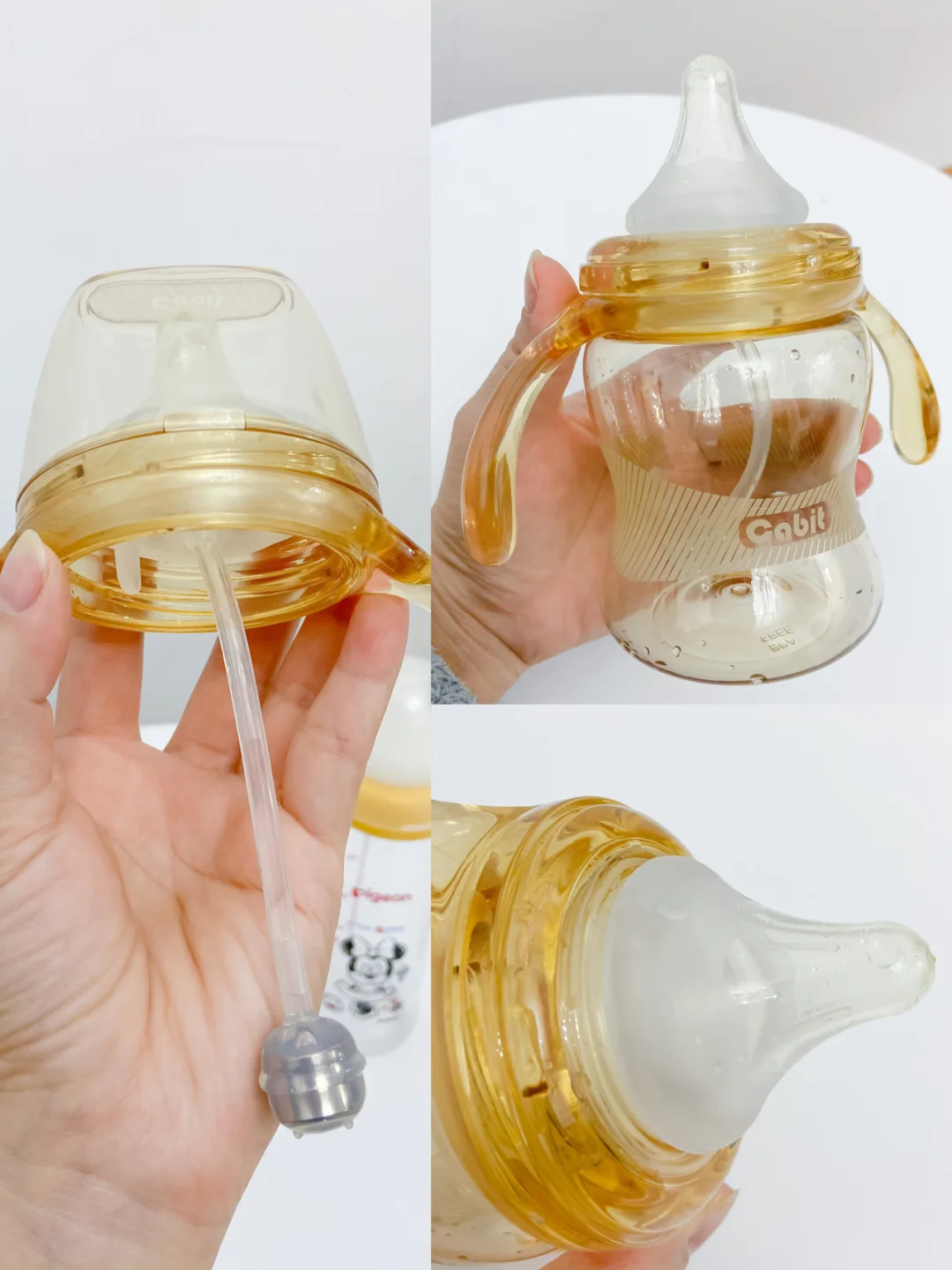 只有咔比特有原装重力球吸管,贝亲和可么多么可以在网上另配吸管,但是材质说不清,不敢乱买