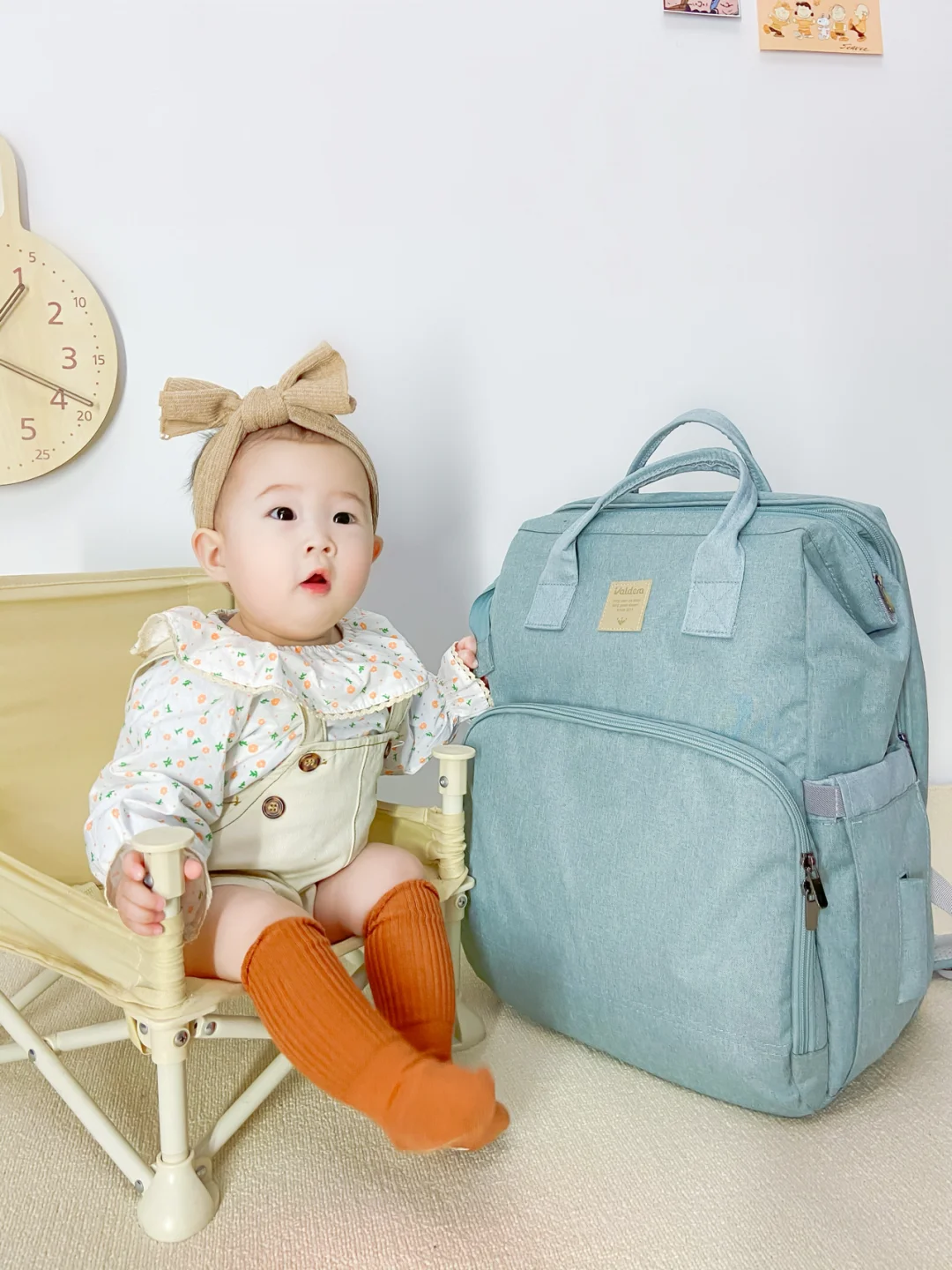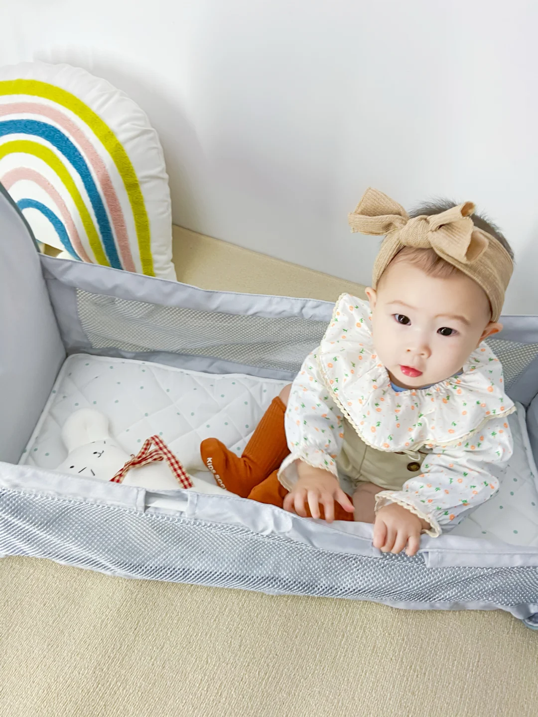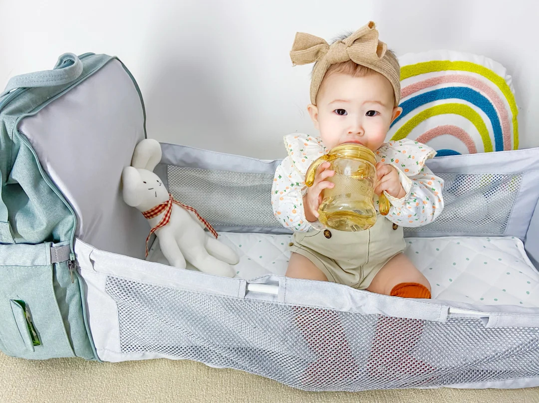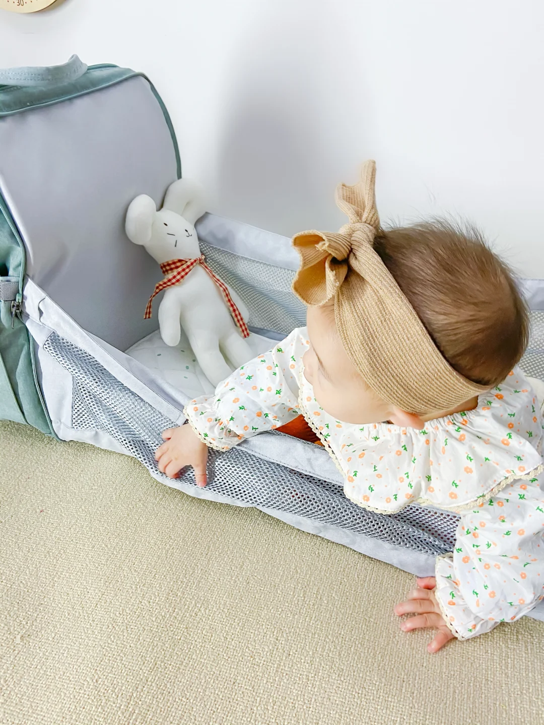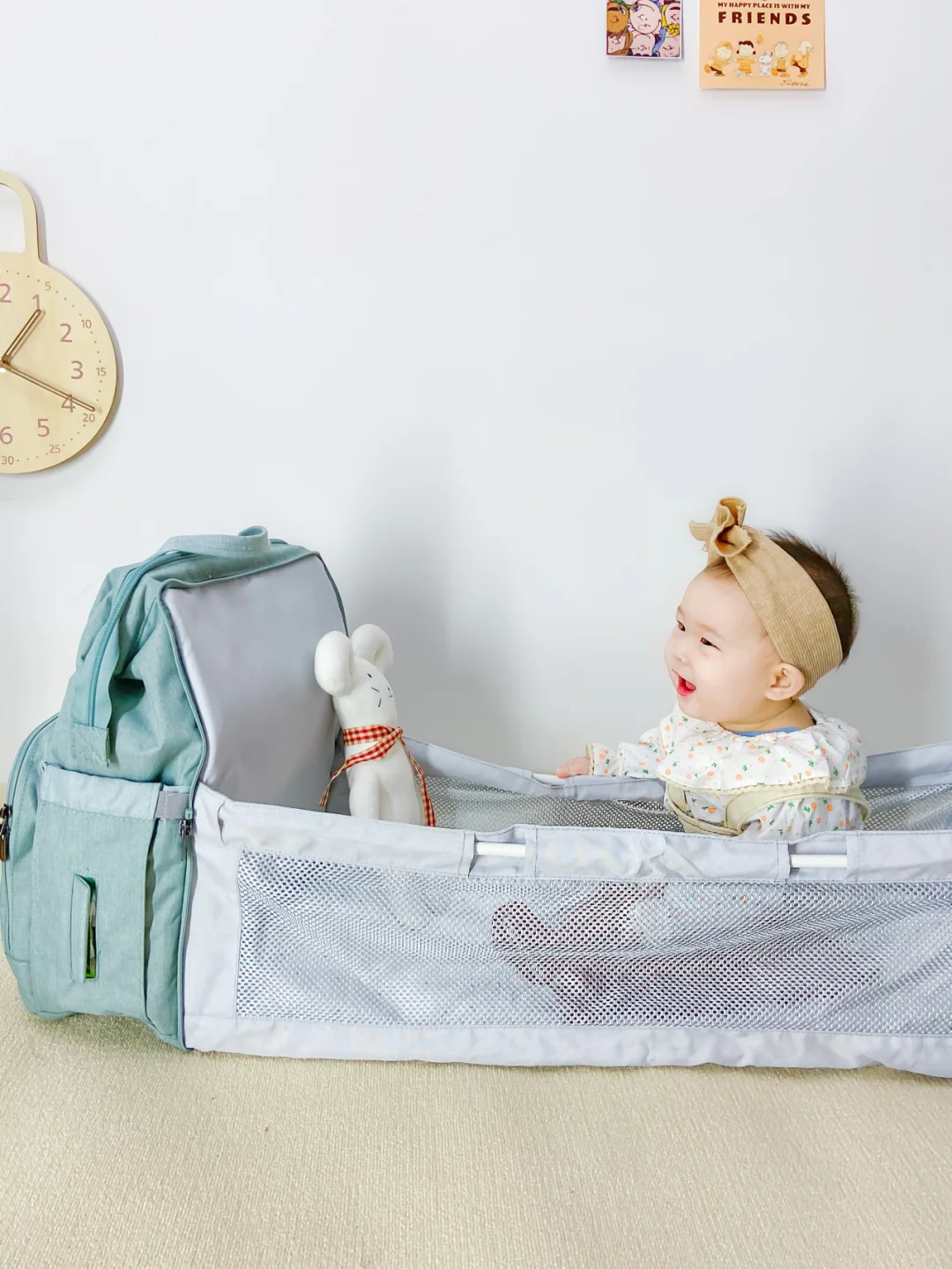👉它其实是一款妈咪包,但是打开之后就变成了一个便携式的床中床