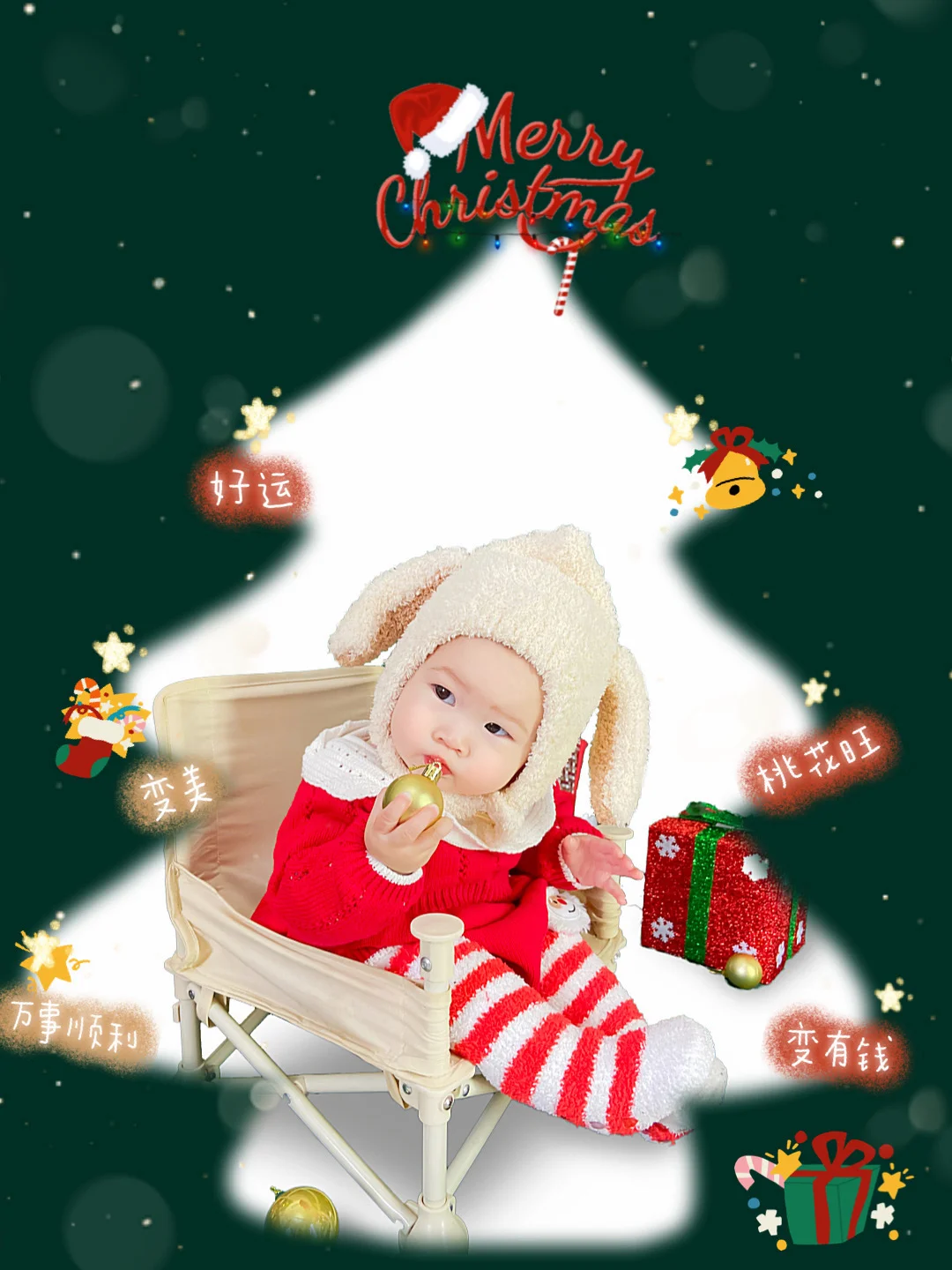 ❄️前几天分享了一组自己在家拍的圣诞写真🎄道具差不多花了六十几。有些集美居然还说找贴纸素材费劲儿,好吧!满足你们,今天就来一组0️⃣成本,三步就能搞定的圣诞写真(背景素材在在图8️⃣图9️⃣,练手的可自取) ❣️全套成本算下来,0元 💛道具:一个娃,成本0元 💛服装:随便什么颜色的衣服都行,白色、红色、绿色(千万别说你没有)成本0元 💛修图软件: 👉首先用lr做下基础的调色 👉打开picsart美易,打开我提供的圣诞背景图(在图8图9),然后添加照片,选中有宝宝的照片,用剪影工具把人抠图下来,放到合适的位置就行了。到这一步根据的效果决定要不要加的阴影,最后还可以选择画笔选择是否要添加一些其他圣诞元素。 👉根据效果,可以到 Facetune2里面选用美妆中的美妆笔加个阴影,顺便可以把人的脸部精修一下 ❄️这样就大功完成啦!都不需要你到处去找贴纸跟字体了 ✨因为这次想尝试点新的圣诞风格,所以没有选择绿色跟红色的服装,而是选择了Kerrie berrie家的白色斗篷,猫咪造型的,软萌软萌的。意想不到拍出了ins的风格 0️⃣成本的圣诞写真🎄就问你香不香? 🌈大家感兴趣的话可以给我留言,回头我会再出一期视频教程,手把手教你们做写真,喜欢的话,双击关注鼓励一下吧❤️❤️❤️ 圣诞照diy|宝宝圣诞写真| |圣诞照在家拍照|圣诞修图
