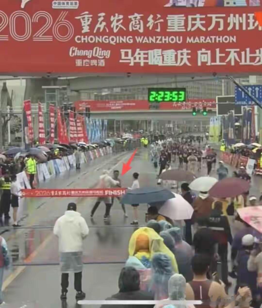 这一事件引发行业高度重视,重庆市田径协会率先作出处罚,对涉事裁判处以停赛1年;中国田径协会随后追加处罚,将停赛期限延长至2年,并对赛事组委会通报批评,要求全面整改组织与裁判培训工作。经核实,选手成绩2:23:53被认定有效,保留冠军名次。不过调查结果是这个裁判因下雨戴眼镜影响了判断。说实话,这个理由太过牵强,不管是全跑还是半跑选手,难道不会在冲线之后再做核实吗?为什么要在别人冲线时进行阻挡?
