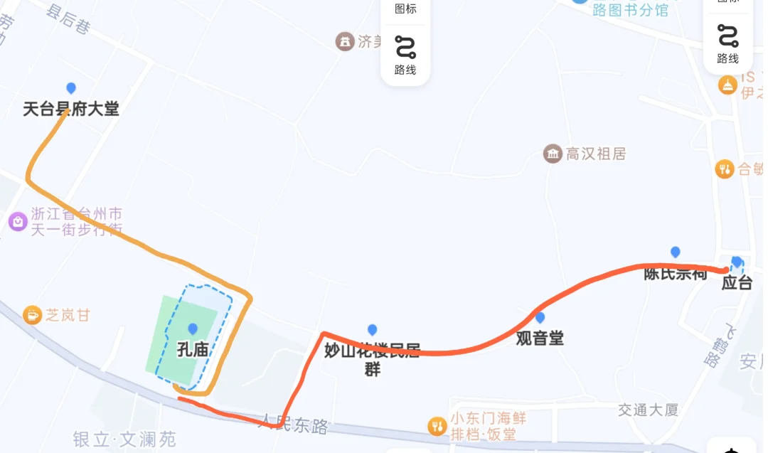 🚶🏻♂️许多攻略都是打车到应台(八门中的大东门)再沿着中山东路一直走,我刚好相反,是从御清斋总店的天一路(说实话虽是老字号但一般)出发,故未去到中山西路的将军庙等,除了孔庙也并未离开中山东路进到岔路的小巷子里,总体大约1公里的路程,40分钟慢悠悠地拍拍照就走完了。期间还在孔庙停留了一会儿,和几个街坊聊了几句。🗺️我放蕞后2张了,如想东西全部逛到并延伸,预留2~3小时