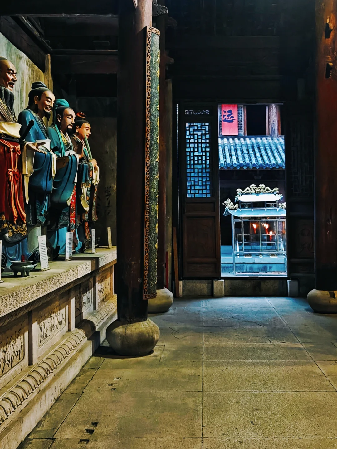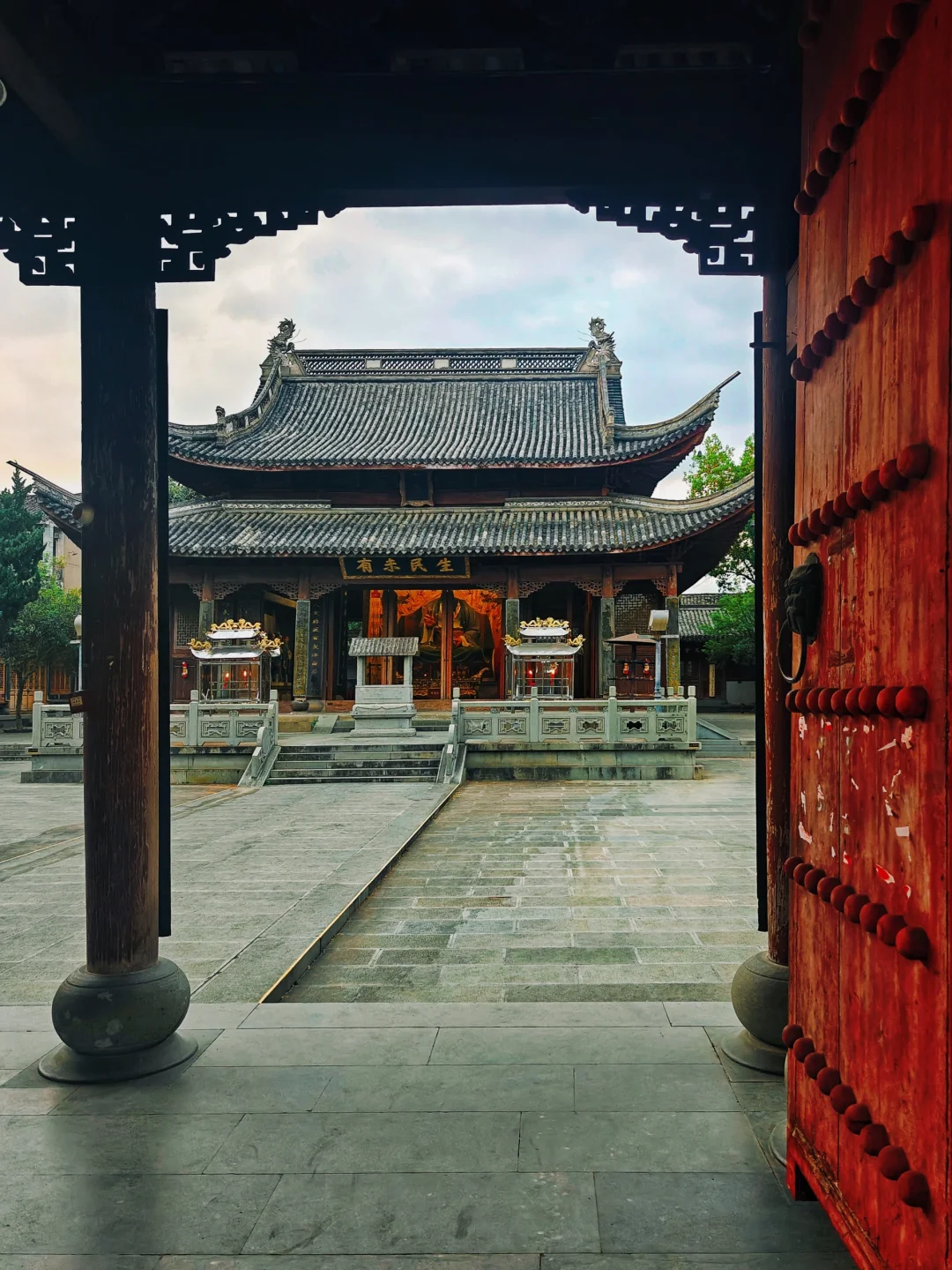 2️⃣孔庙:天台以儒释道三家融合发展的“和合文化”闻名,去过国清寺和桐柏宫后再来个孔庙就算是打卡齐全了✔️。孔庙大成殿为天台县城内现存规格蕞高、体量最大的古代建筑,目前留存的基本保持清制,另有明伦堂也为清代遗存。正门在人民东路,快六点到的居然还开着,里面没有游客,只闻一位儒士在殿内吟诵经典,其声悠扬如歌唱,辅以击鼓敲钟,虽听不懂内容,却深被其古腔古调震撼