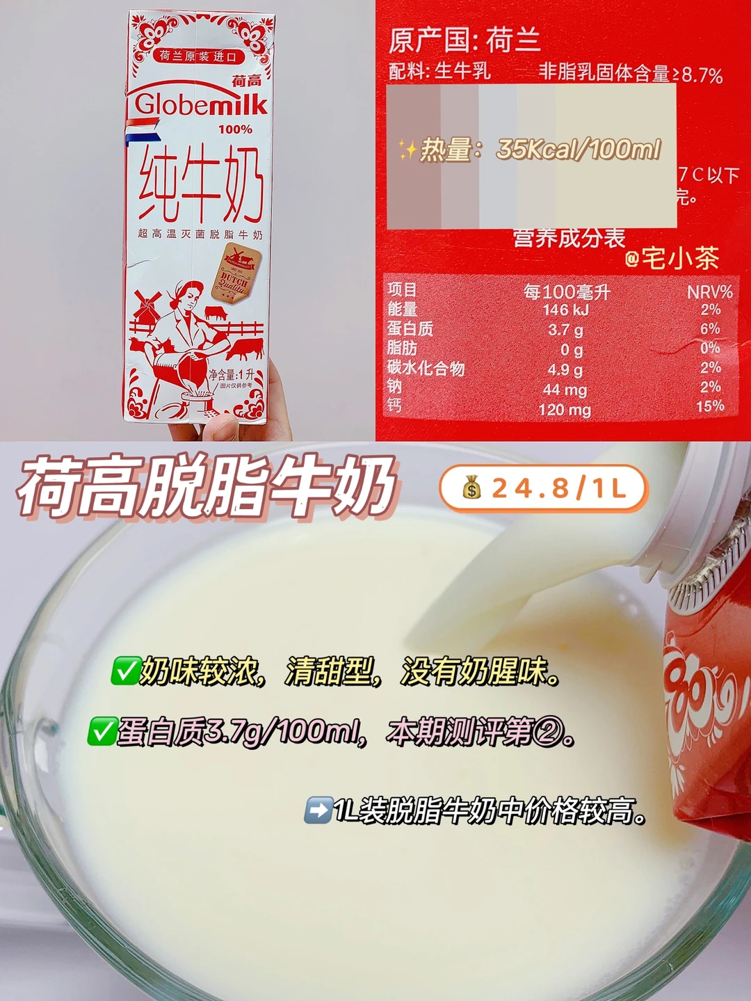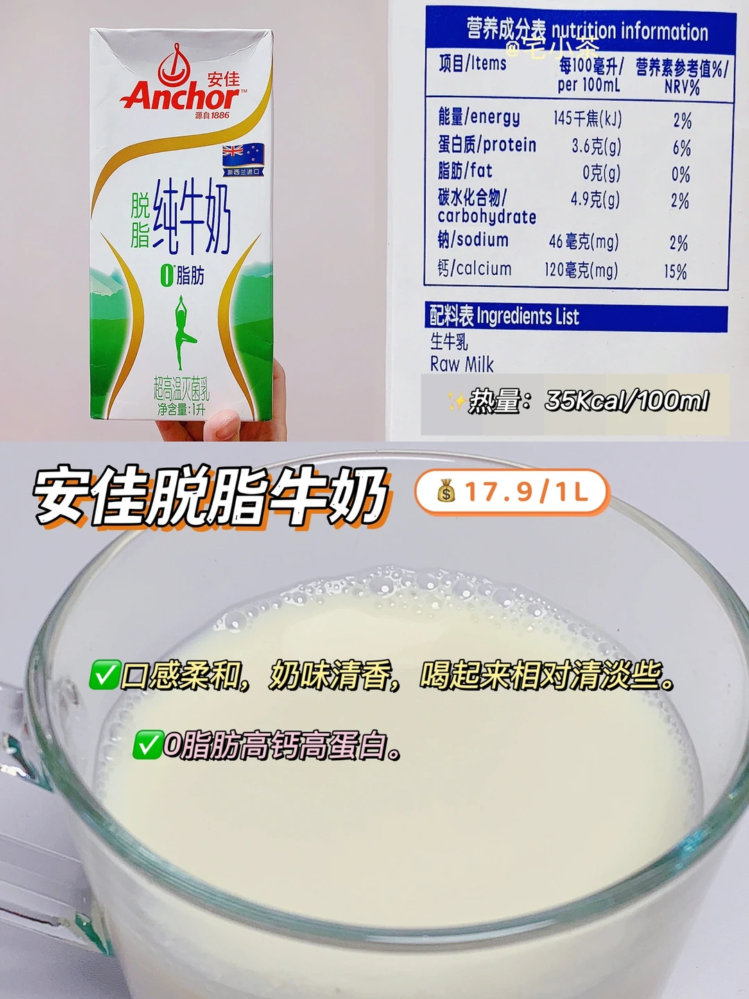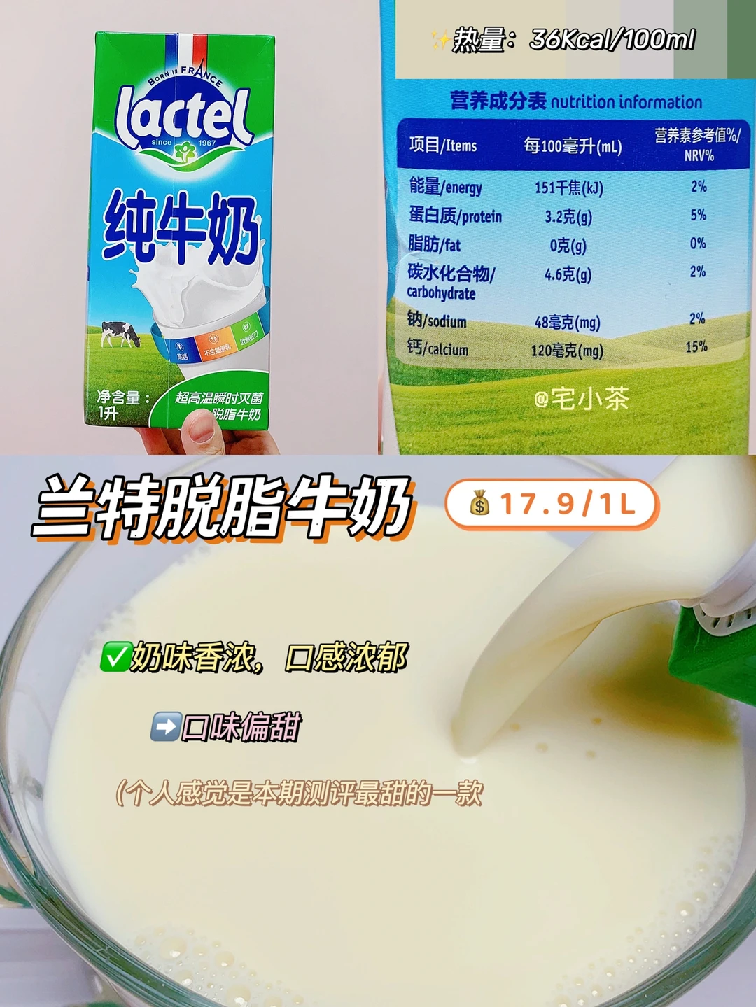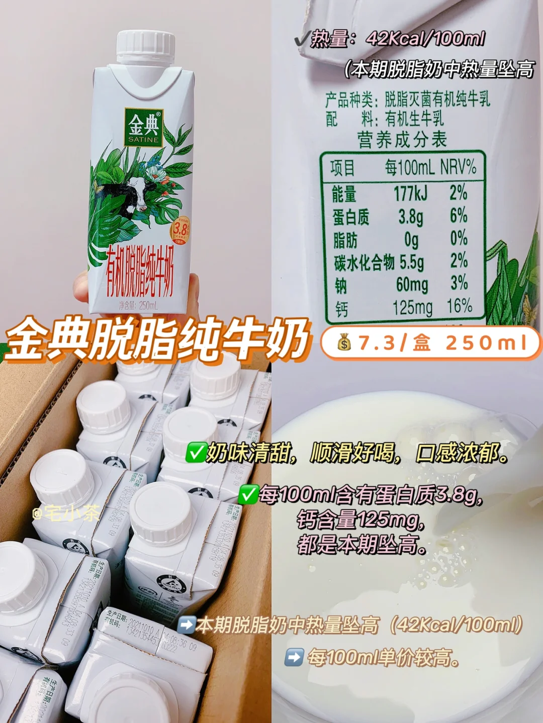 奶味香浓,口感清甜顺滑,在脱脂奶中香味和口感都是坠浓郁的!0脂高钙,营养成分ok。