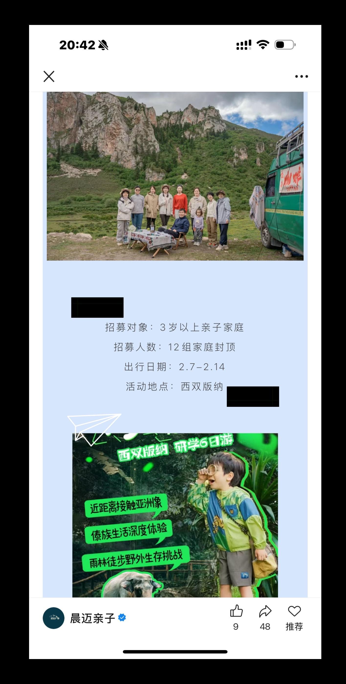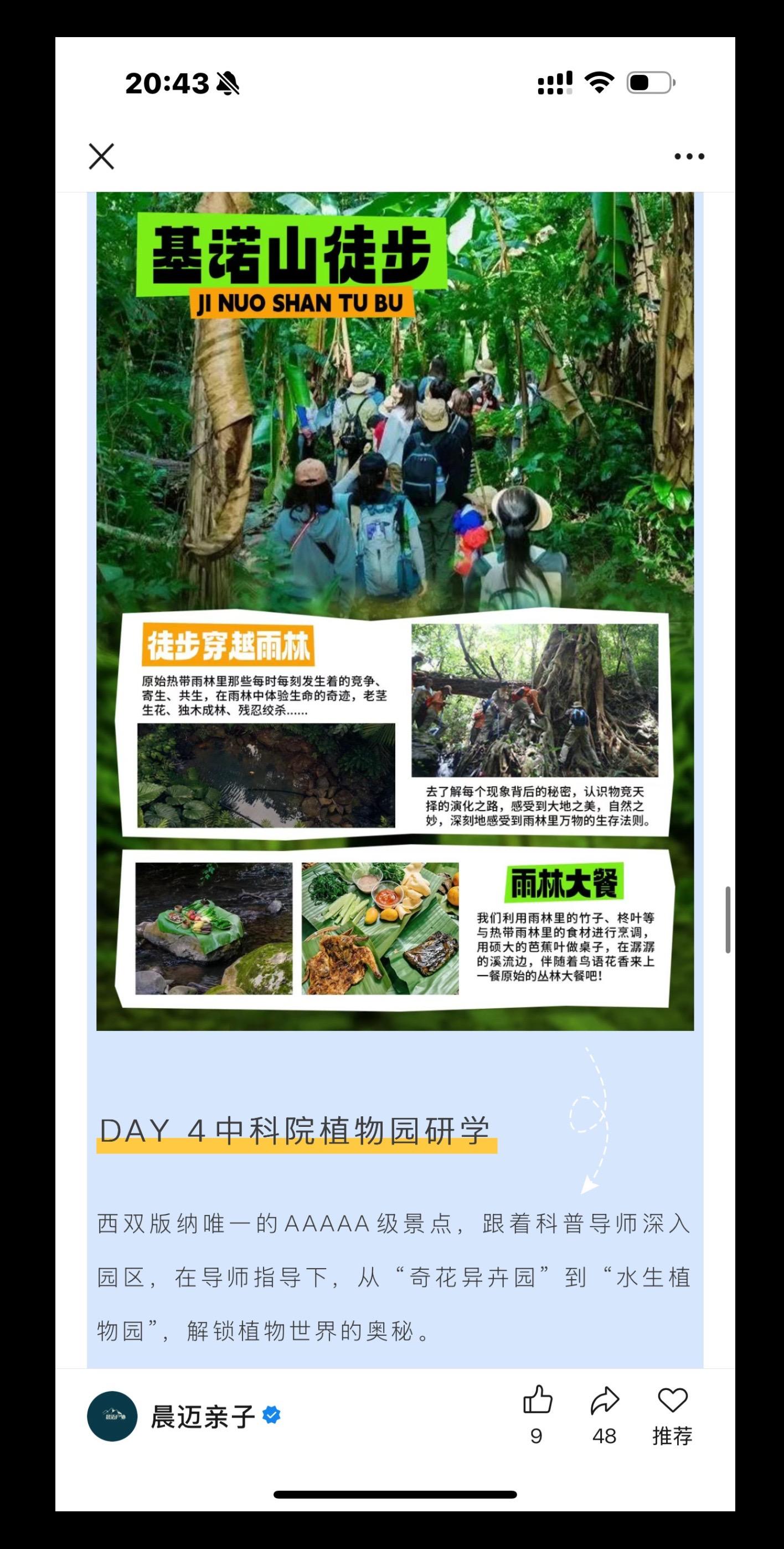2月7号到2月12号,有时间的新老朋友们,可以跟我一家人去西双版纳玩乐/研学/育儿交流/问题咨询。价格每人6999。详情可私信噢。