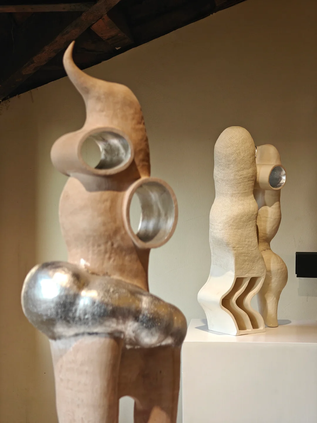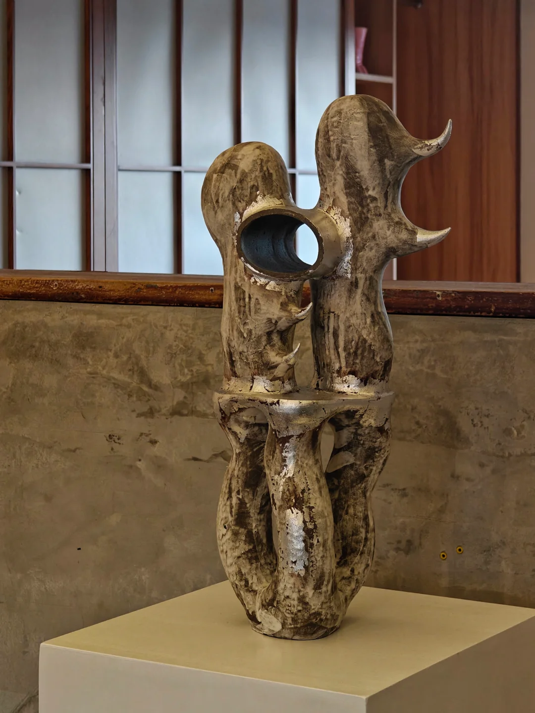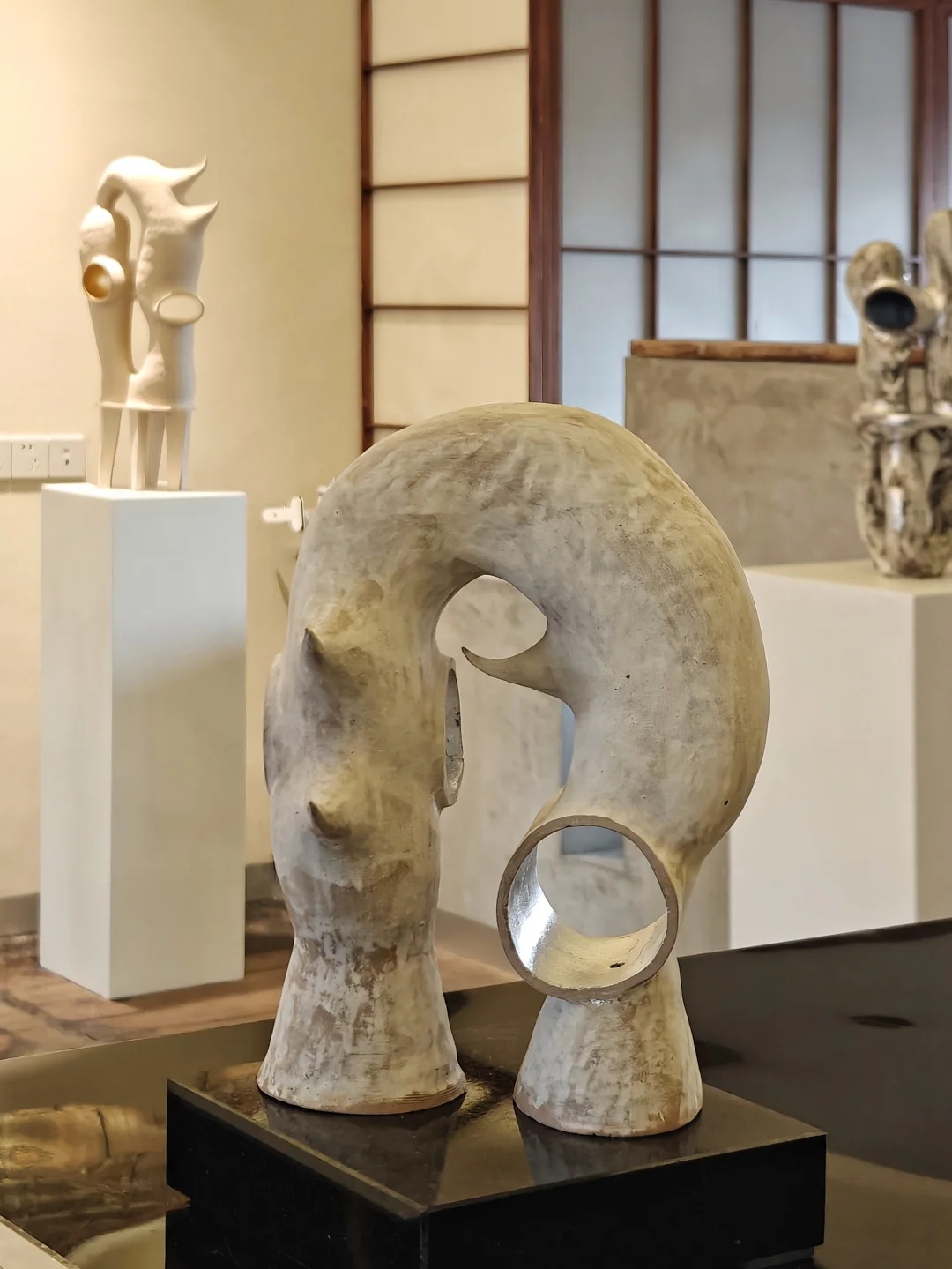 🗿艺术家使用陶瓷与铝材,结合刚性结构与流动曲线来塑塑作品,探索自然与人工、有机体与建筑之间的模糊界限。