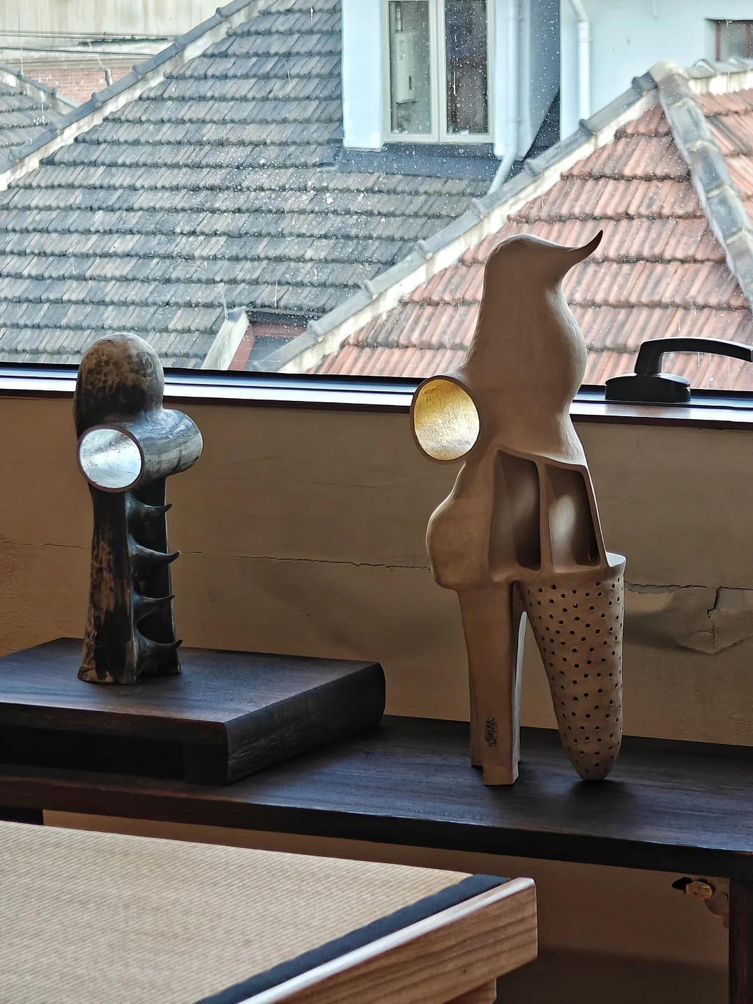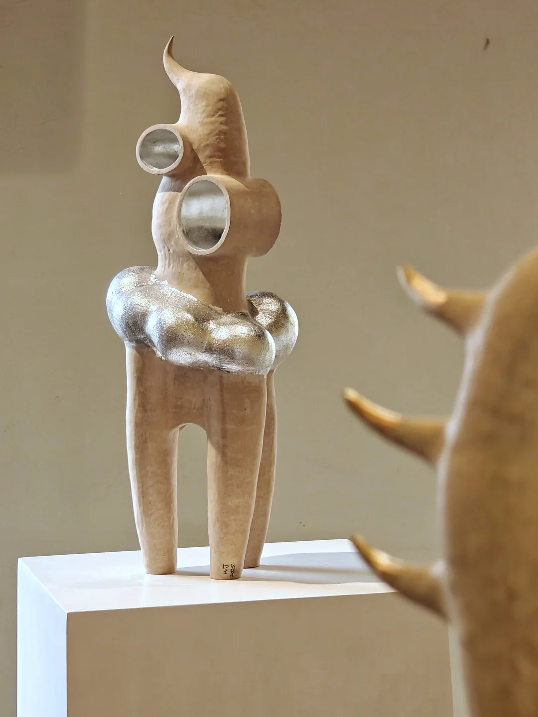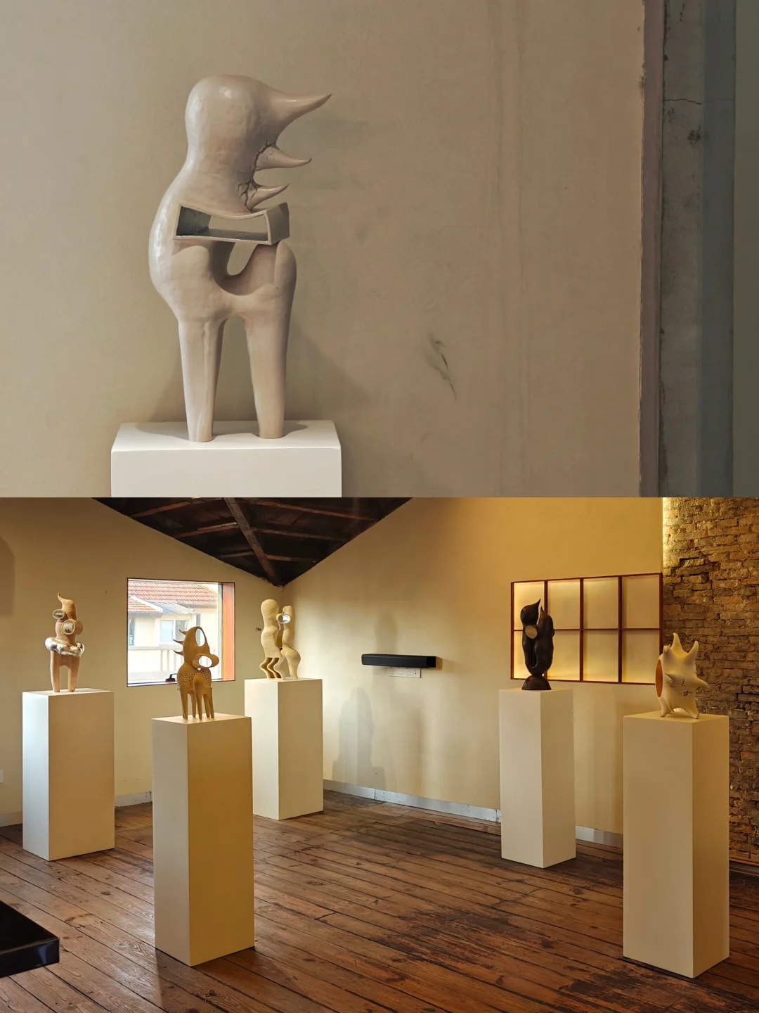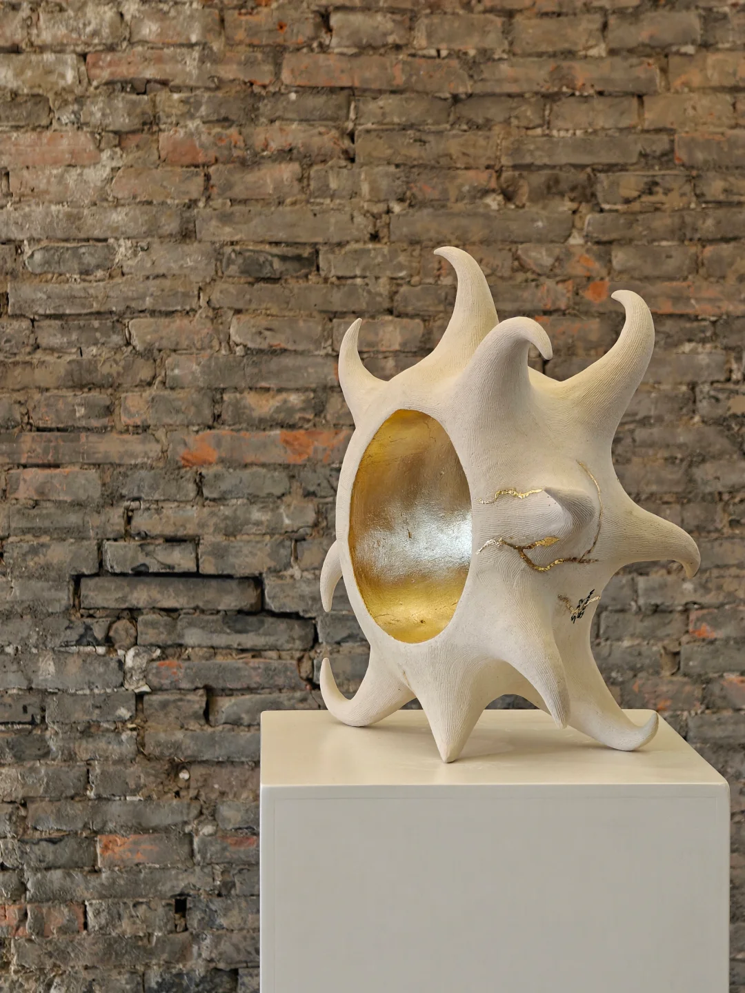 🗿艺术家使用陶瓷与铝材,结合刚性结构与流动曲线来塑塑作品,探索自然与人工、有机体与建筑之间的模糊界限。