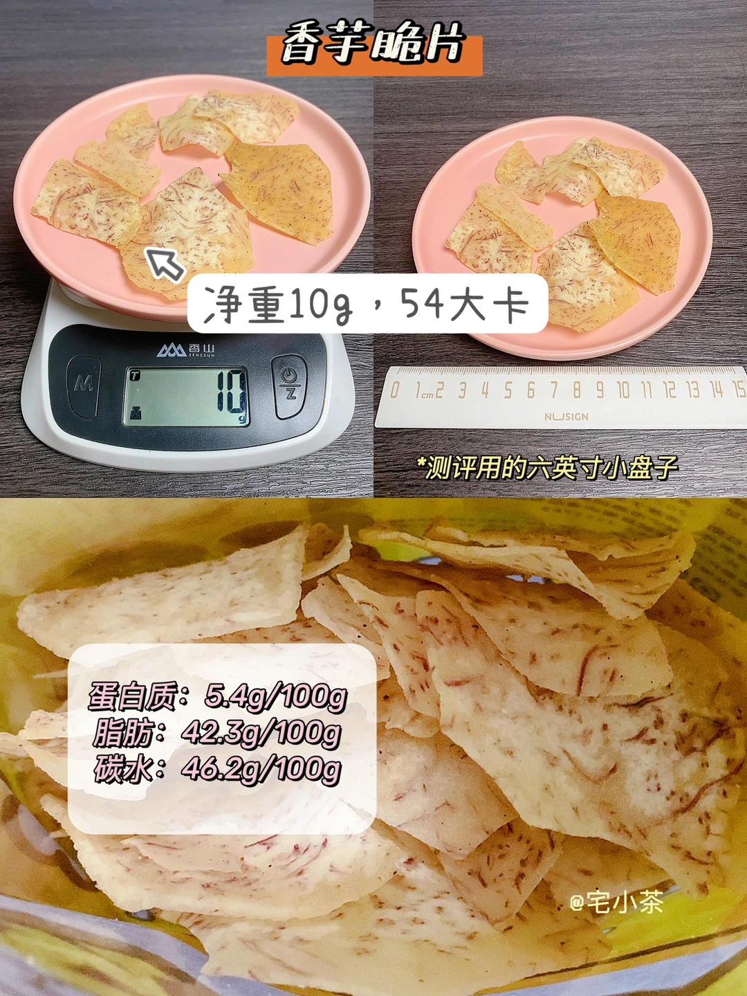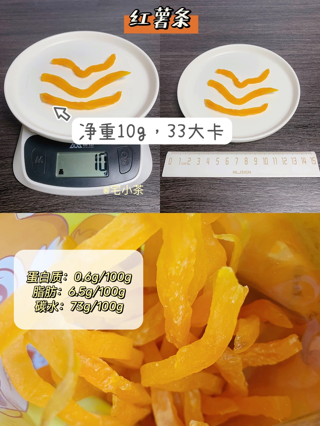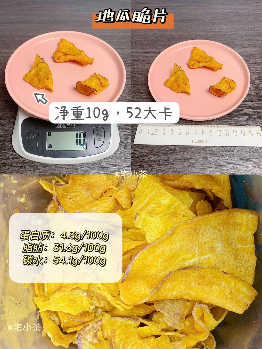 1️⃣地瓜脆片:净重10g,热量52大卡