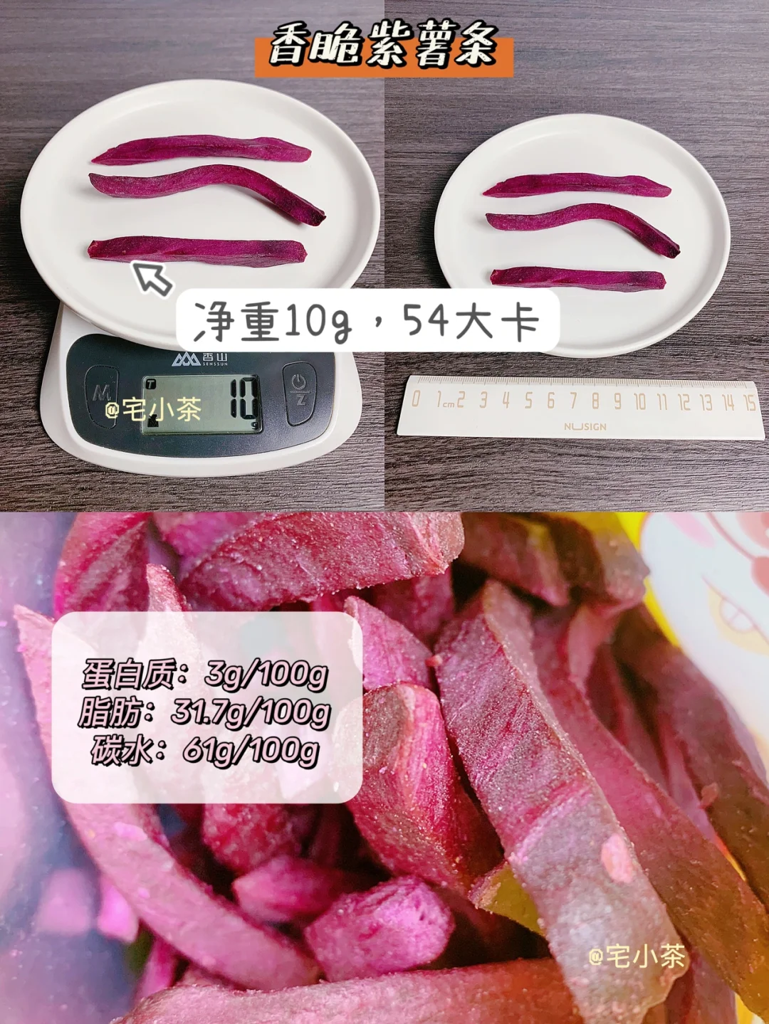 3️⃣香脆紫薯条:净重10g,热量54大卡