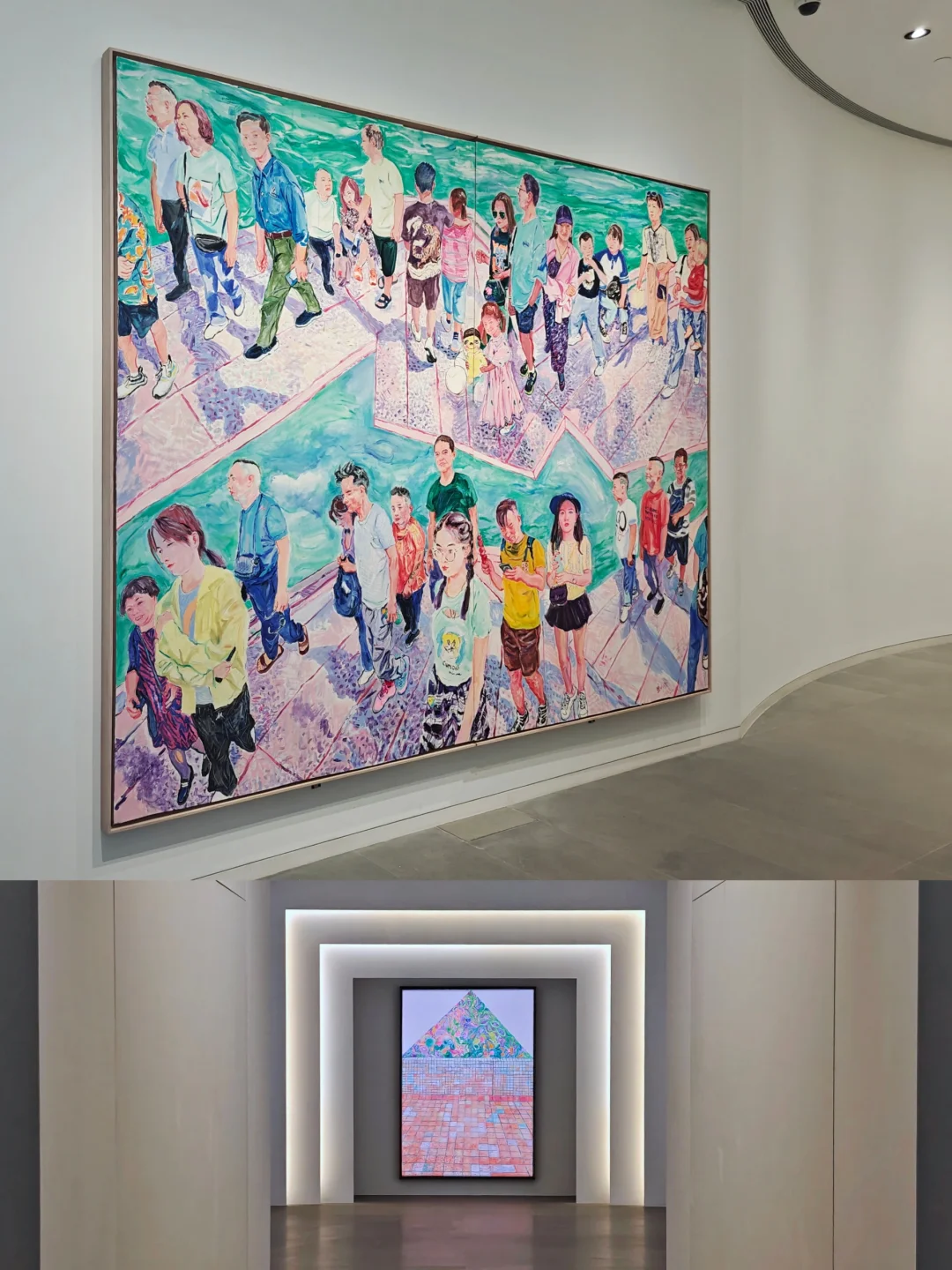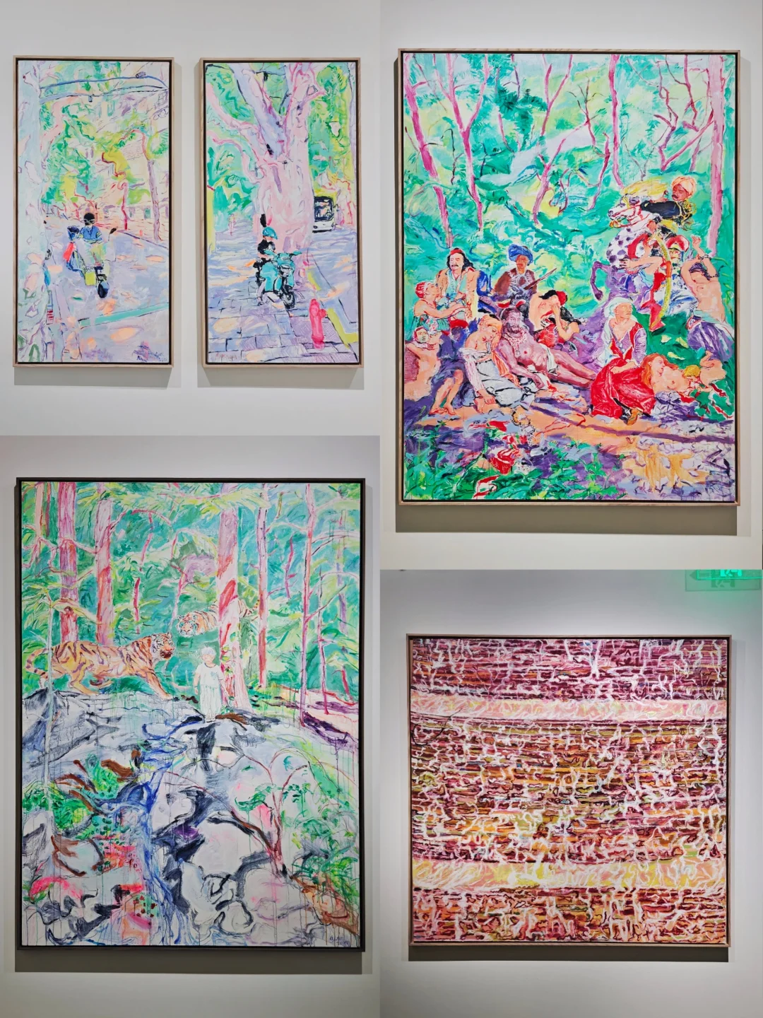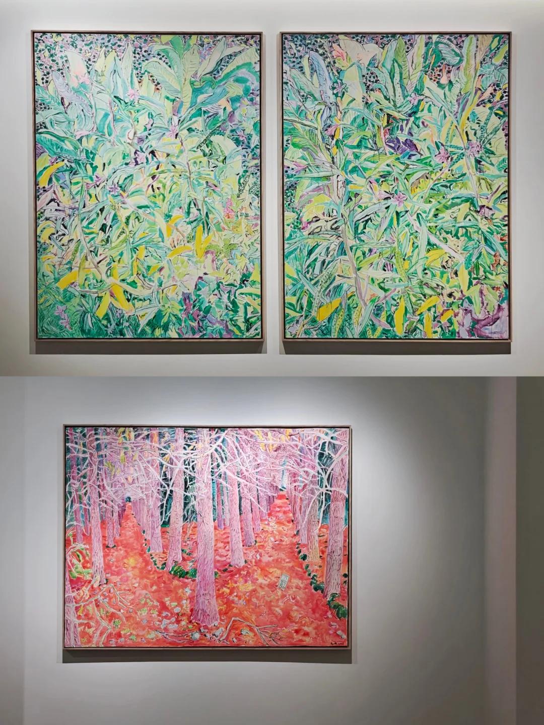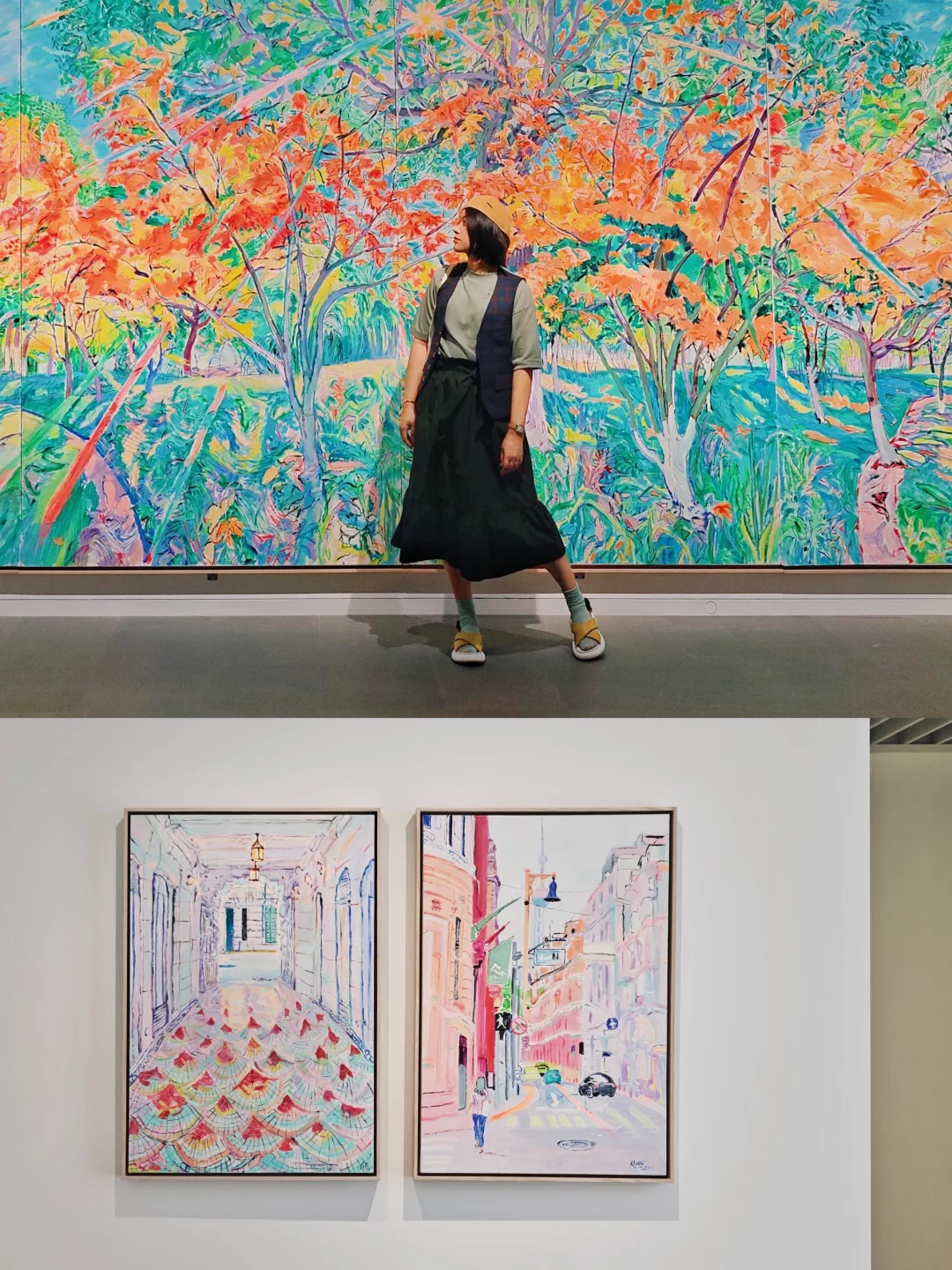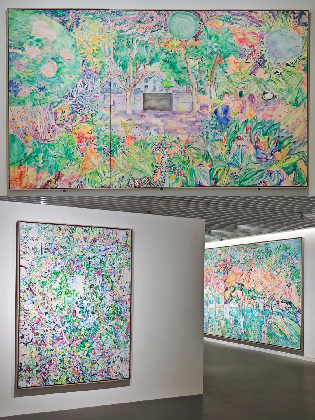 👉去年在瑀空间看过艺术家的小型个展,就觉得他的作品一定是大尺幅更好看,画廊空间限制,没有那么惊艳。这次震旦这个场地真的是很合适了。场馆本身是安藤忠雄设计的工业冷淡风混凝土灰色空间,让作品的色彩呈现更鲜明,超大尺寸的画面让人很有沉浸感。