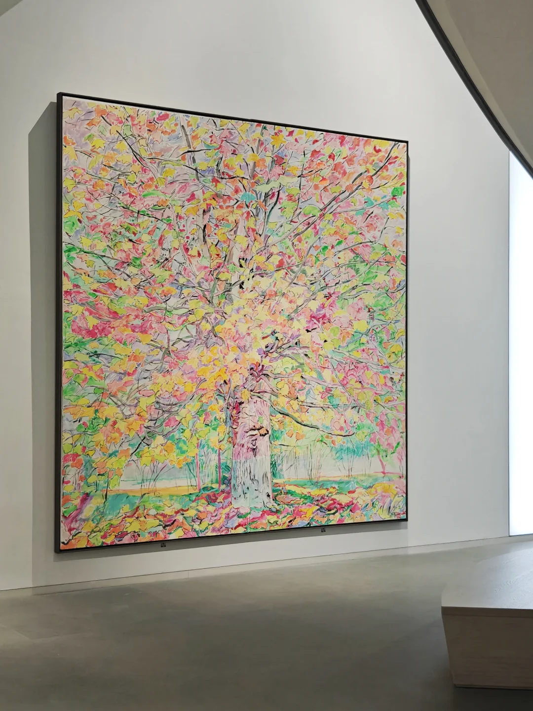 🖼️艺术家深受莫奈、马蒂斯影响,作品色彩明艳灿烂,笔触自由灵动,兼具书写性与意识流特质,打破焦点透视,采用移动观看视角。