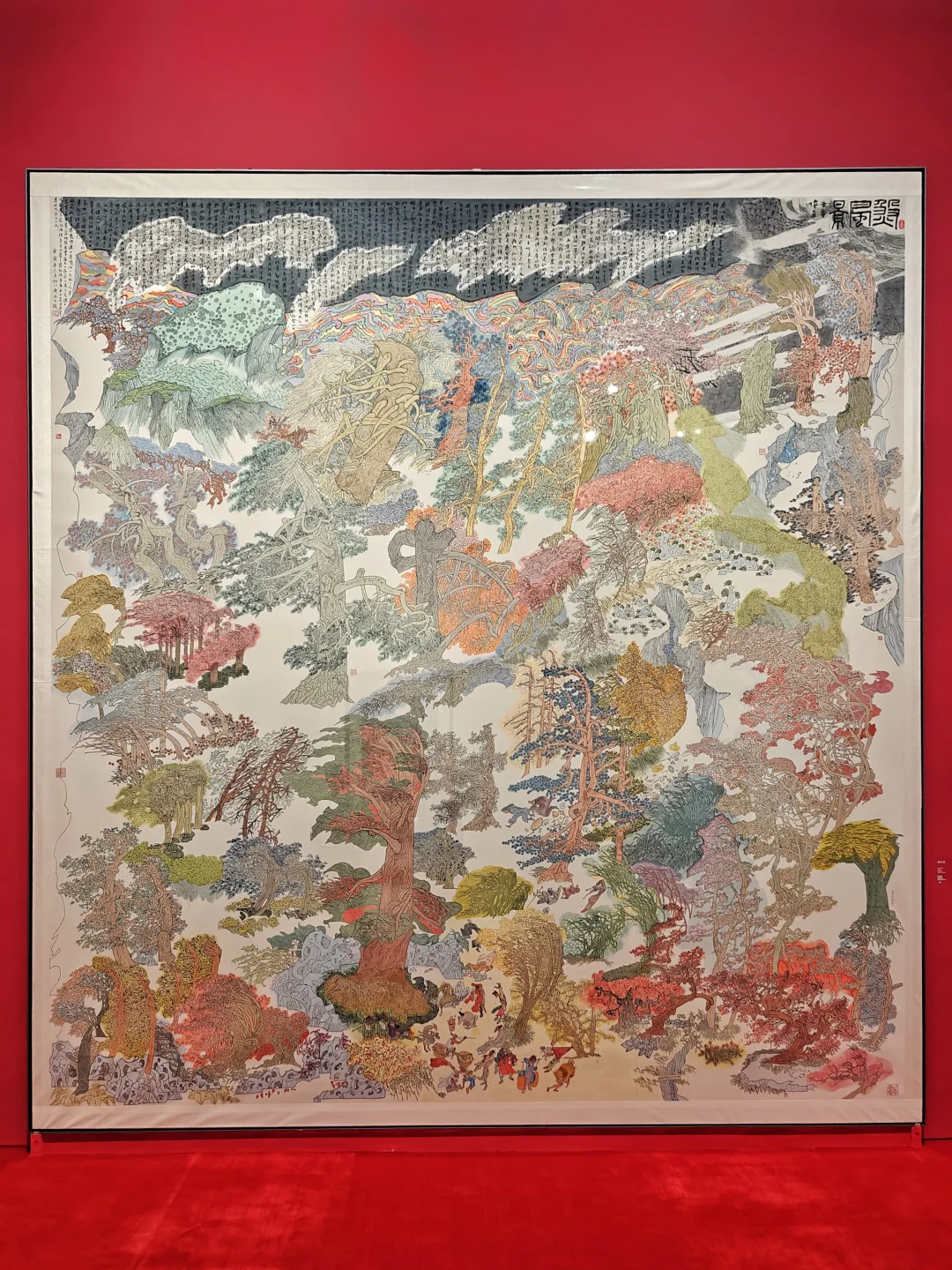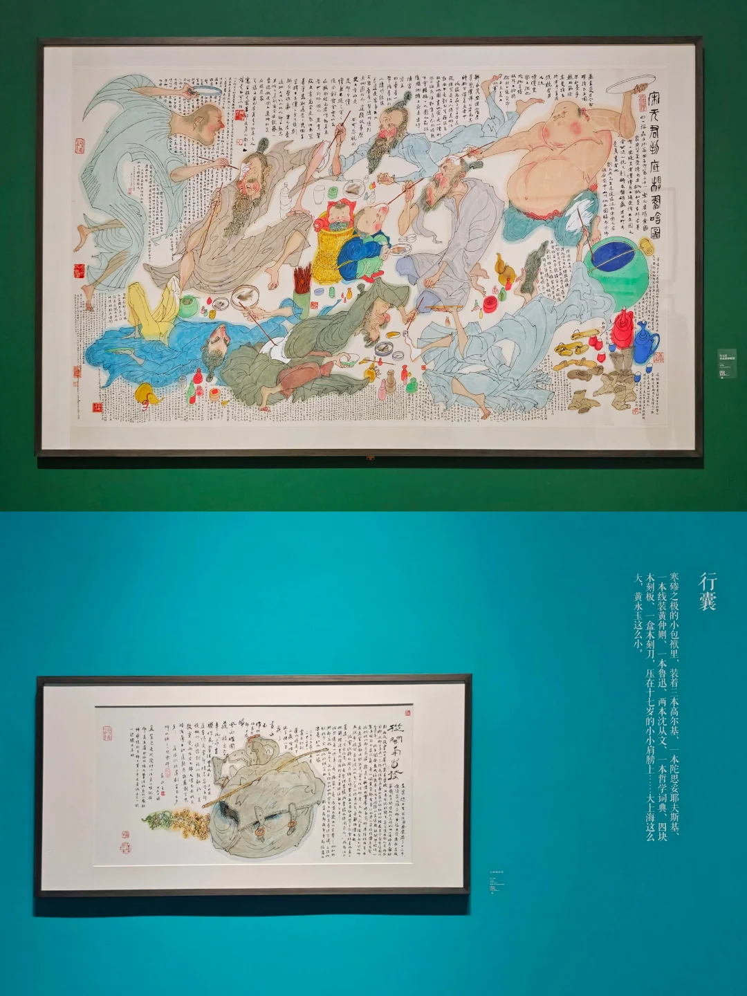 🔸展览后半程让人眼前一亮的巨幅作品《煞风景》(虽然是复制品),花了黄老3年时间,讽喻古今雅集与现世荒唐事