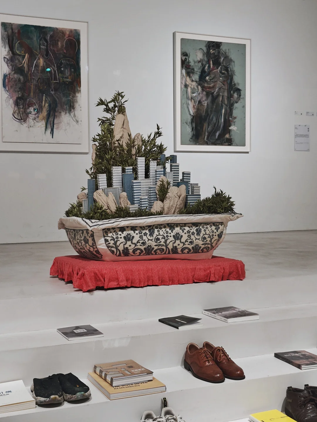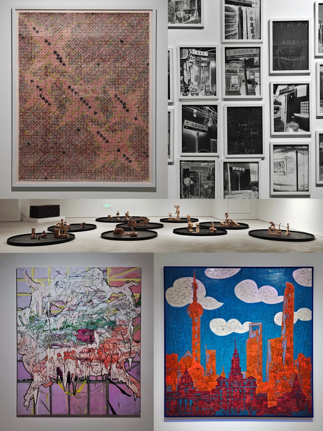 🏙️展览包含绘画、诗歌、音乐、摄影、装置、数字影像、电影剧照、综合材料等多元媒介,通过多维度的艺术呈现,构建了一个关于上海城市记忆与文化认同的立体档案,既是当代艺术的综合呈现,也是城市文化研究的视觉文本。以"地理空间"为锚点,通过"重建的现场"概念,探讨以下问题: