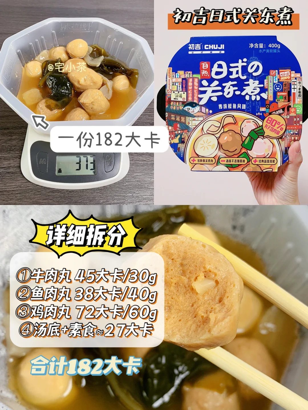 附一份初吉关东煮热量拆分: