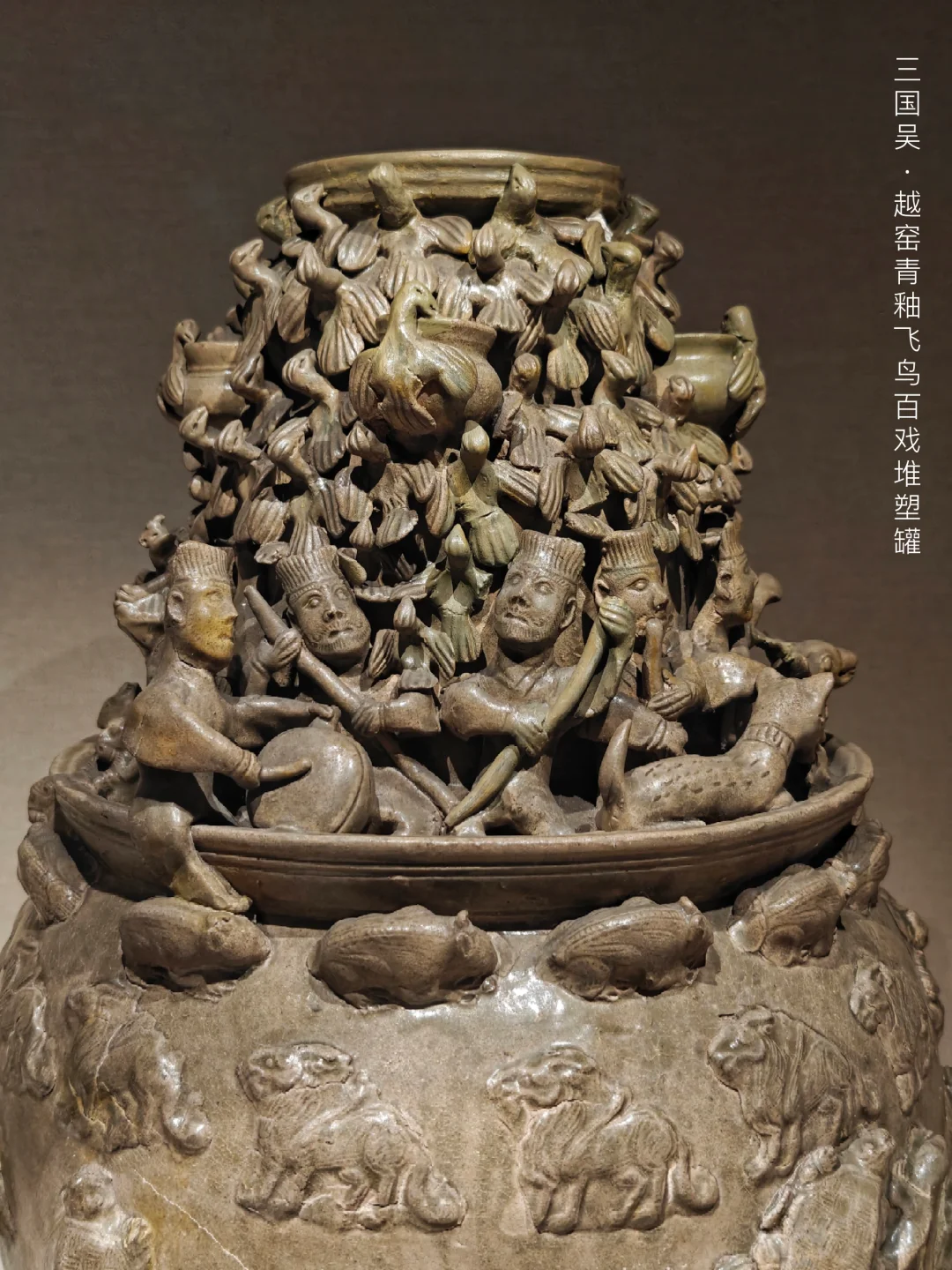🔸三国吴·越窑青釉飞鸟百戏堆塑罐