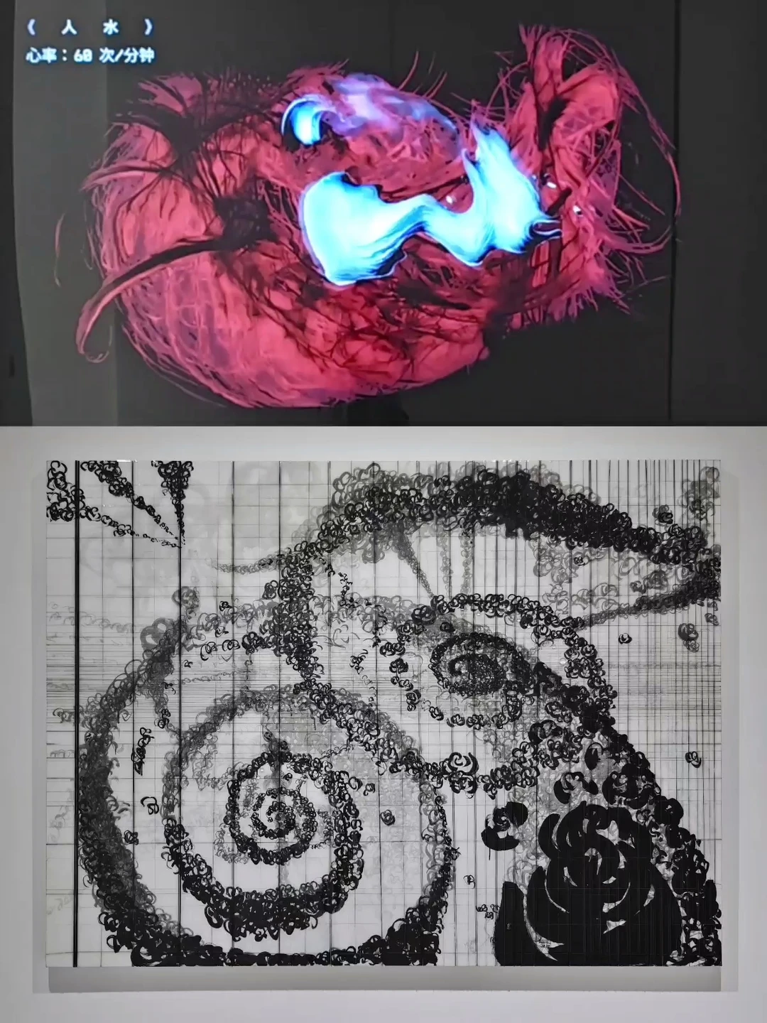 👉这次展出的作品中,屏幕媒介装置在去年的群展中展出过,个人还是比较喜欢的。其他的架上作品画面AI味比较浓,只能说不是我的菜了。不过中央展厅的雕塑布置挺有氛围感的,适合喜欢出片的小伙伴。