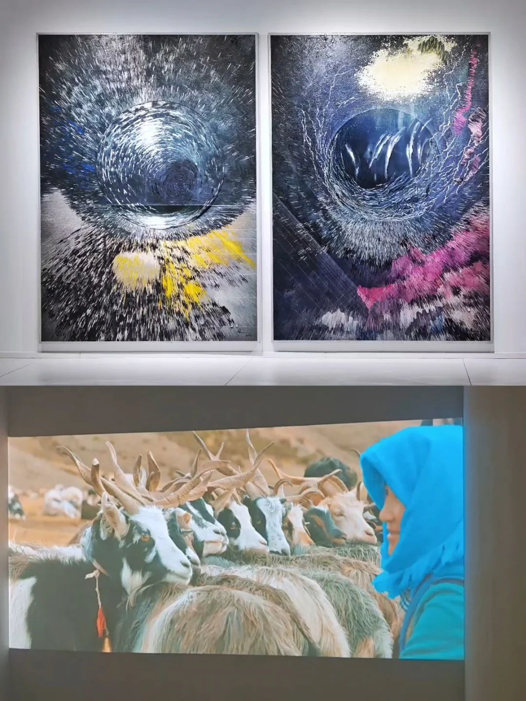 🖼️以“水”为核心元素,探讨自然、科技、文化三者的交融,通过多元媒介(布面丙烯、综合材料、数字技术等)呈现水的哲学意涵与美学表达。