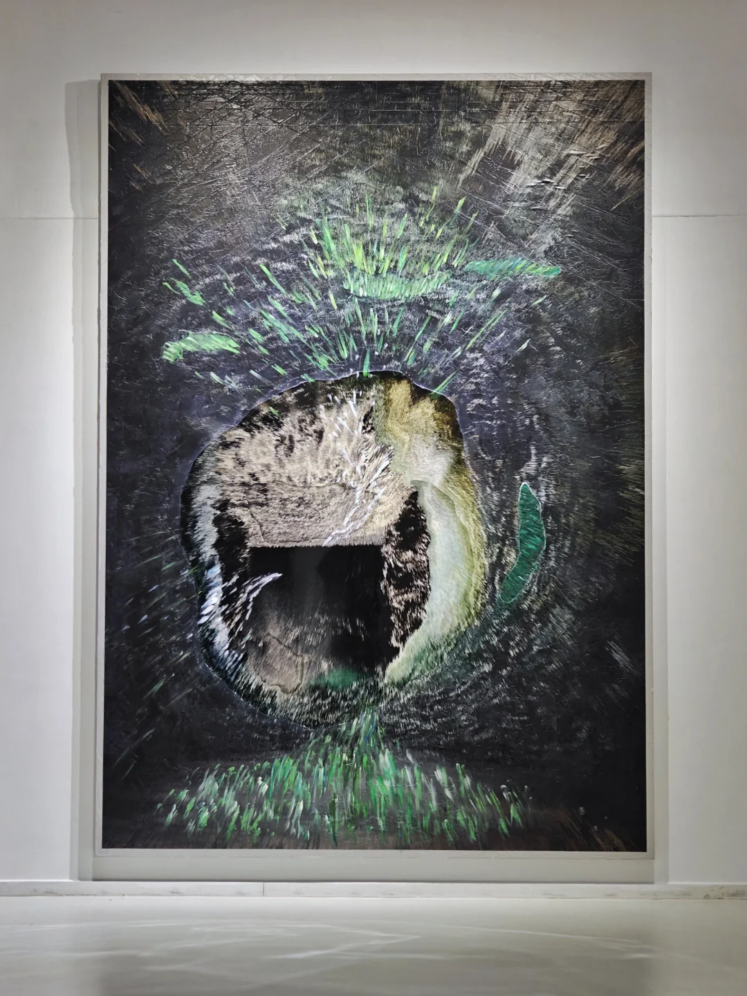 👉春美这个场馆还是很适合大画幅的展出的。这位艺术家也是不陌生了,之前在太古汇的哈罗德茶室做过小型的展出,春美的群展上也见过,宝龙的光之茶室还挺出圈,绍兴路的RONG源应该是以她为主推的。