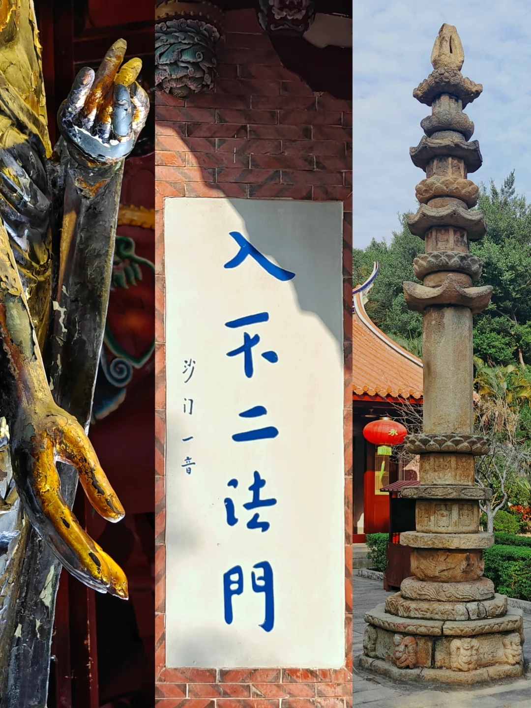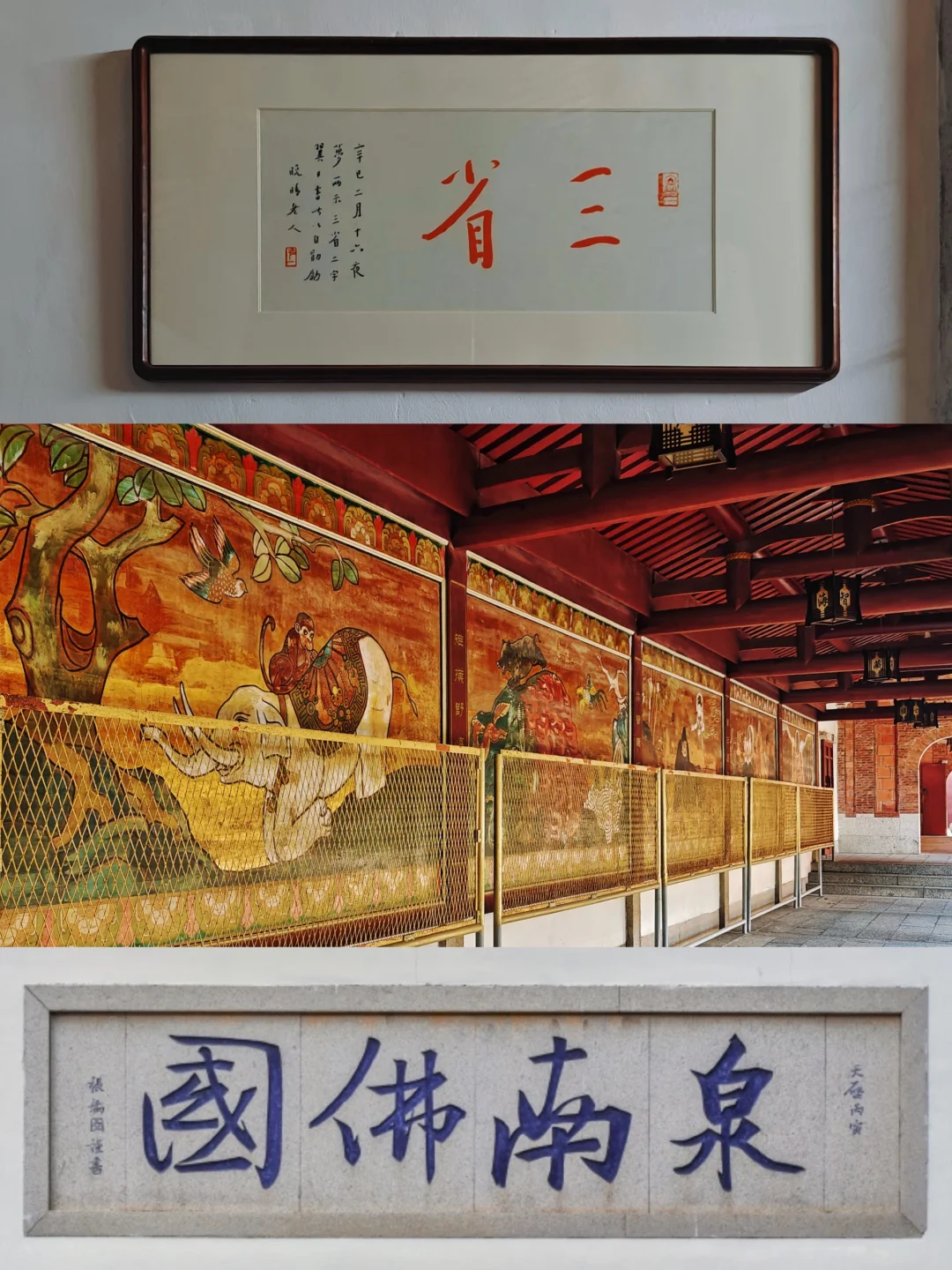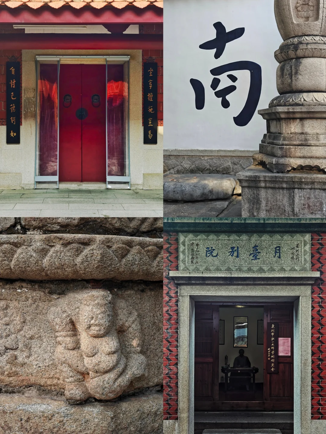 🙏🏻山门别具一格,它不在南北中轴线上,而是与之垂直,山门向西开。进入山门是一条东西向甬道,有五株老榕树,宋朝僧人祖珍建造的七佛塔分立于榕树之间。右侧紧挨着的小学教学楼里传出的嬉闹声,平添一份烟火气,却又在踏入月台别院后悄然隐去。甬道尽头墙上“泉南佛国”四字为张瑞图所书。
