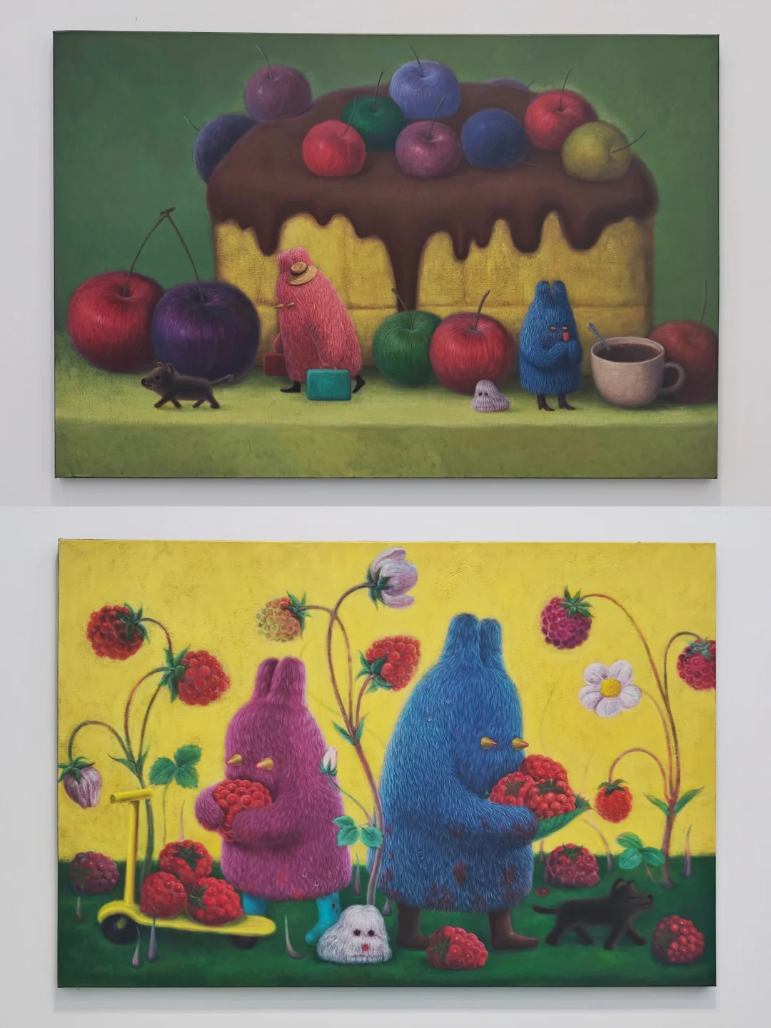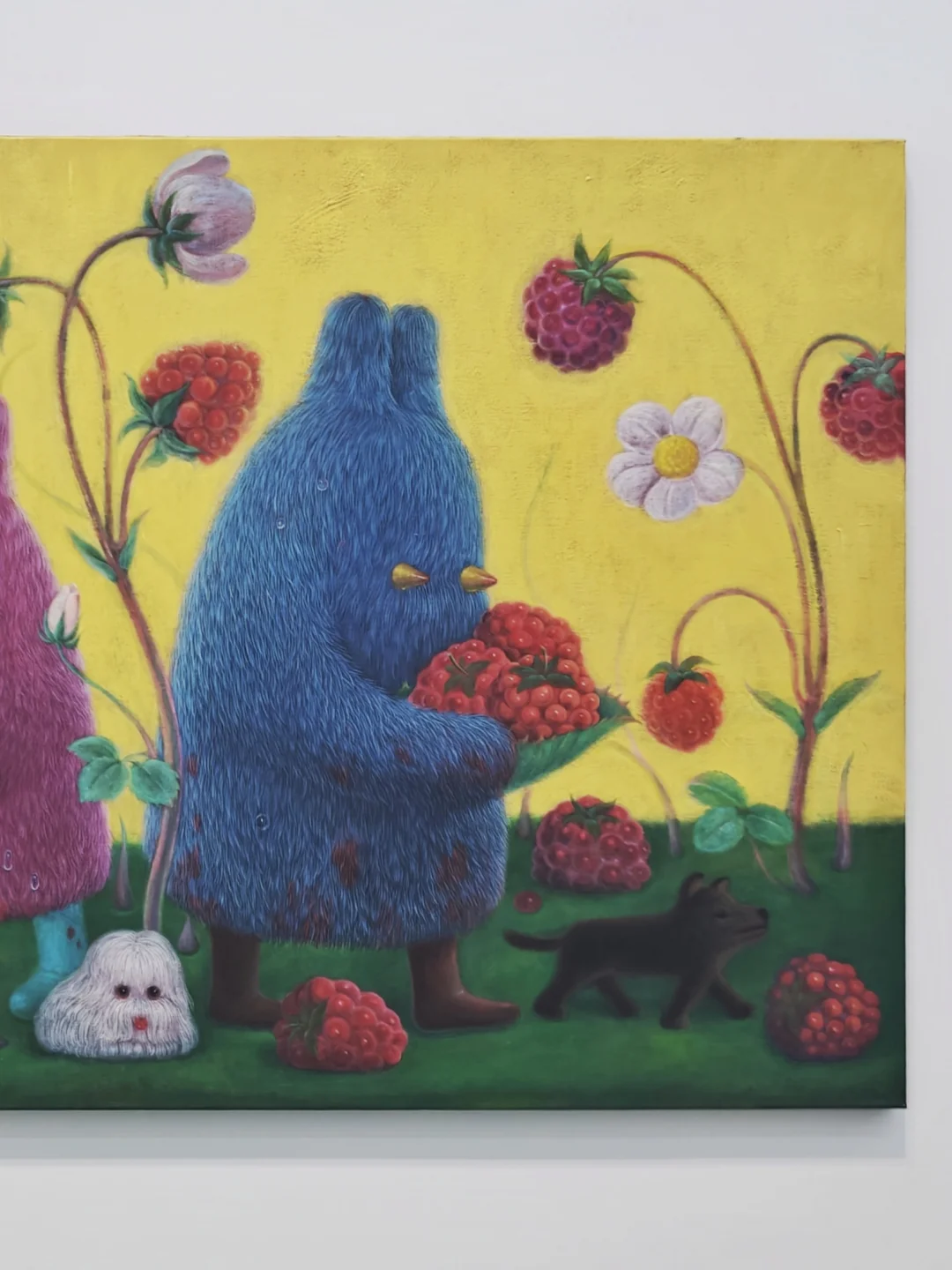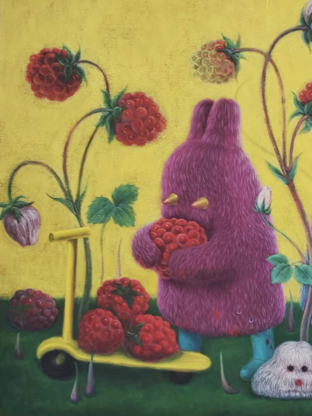 🔵这位艺术家的作品画面整体质感是“毛茸茸”的,其中的物品和生物都“长毛”,色彩柔和中又不失鲜艳,观感活泼又治愈,让人忍不住想伸手摸摸。充满细腻笔触的超现实主义画面中蕴含着许多让人熟悉的叙事感。