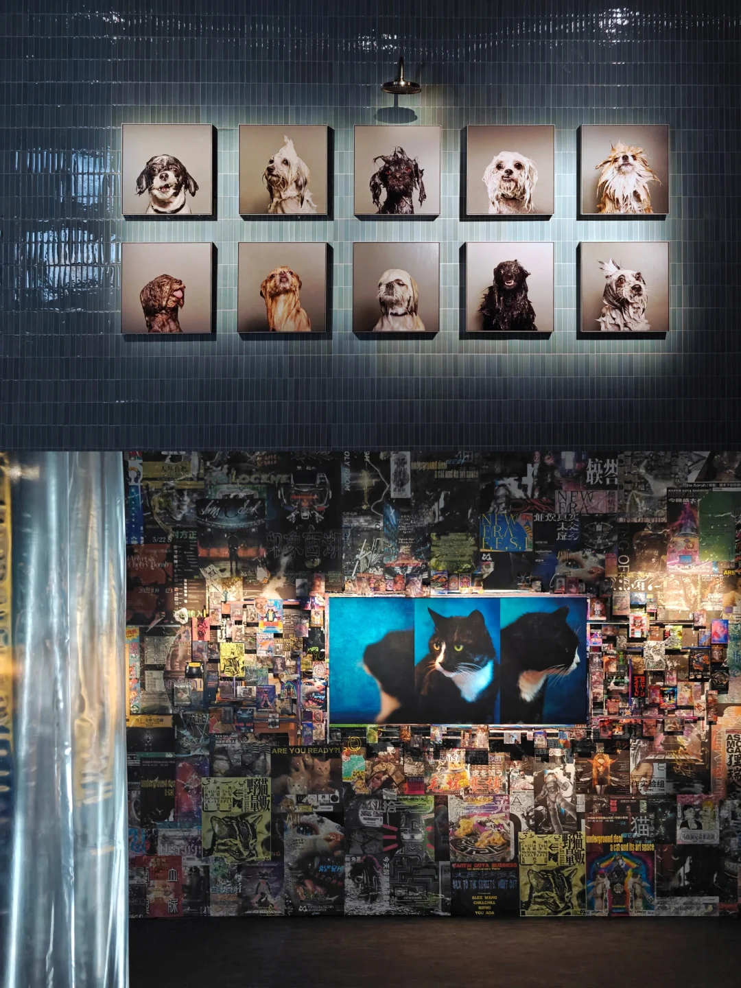 🐰沉浸式场景:《湿狗》展区还原浴室空间,淋浴头、瓷砖与浴帘营造真实洗澡场景
