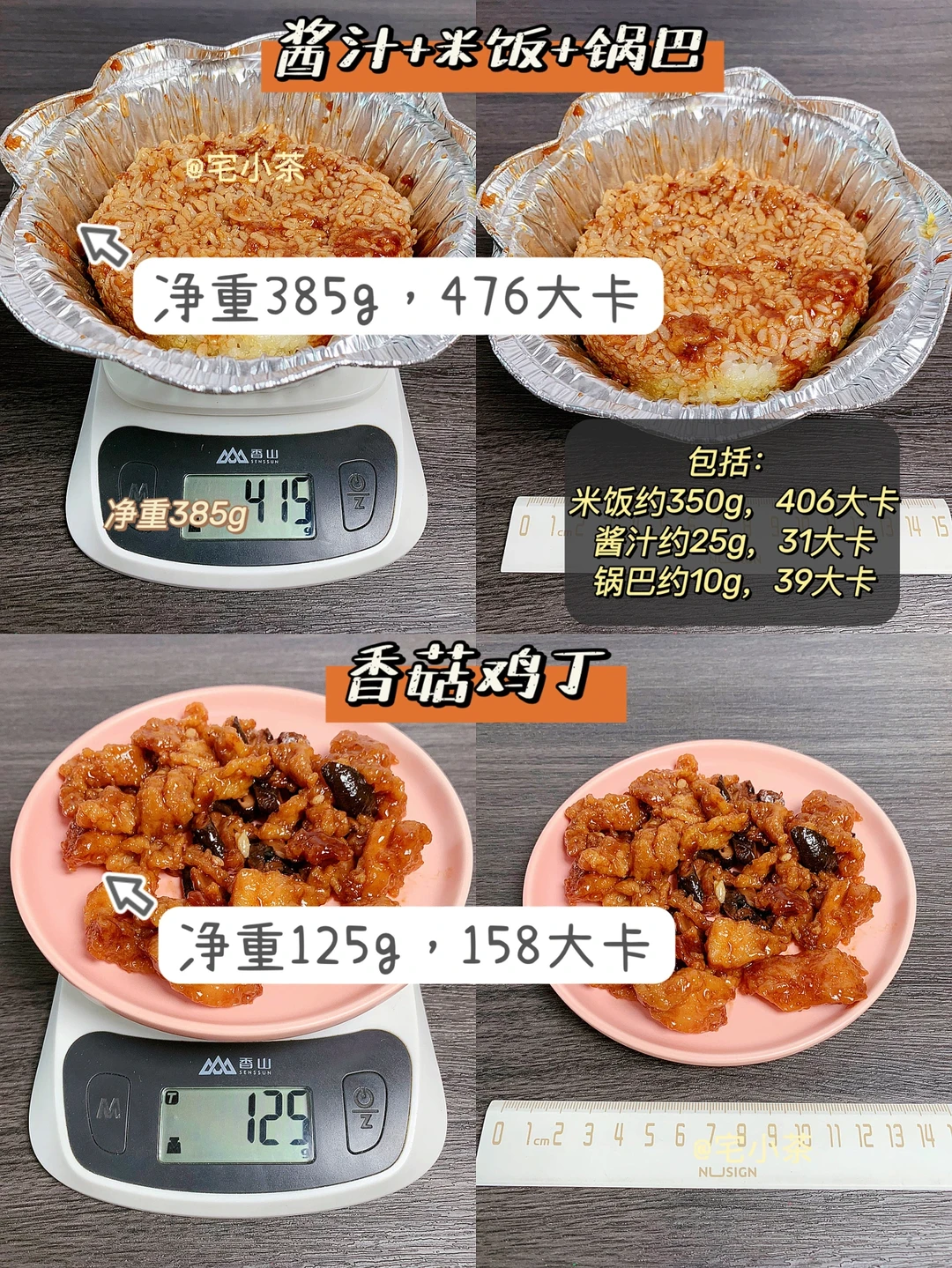 ➡️酱汁+米饭+锅巴:净重385g,热量476大卡