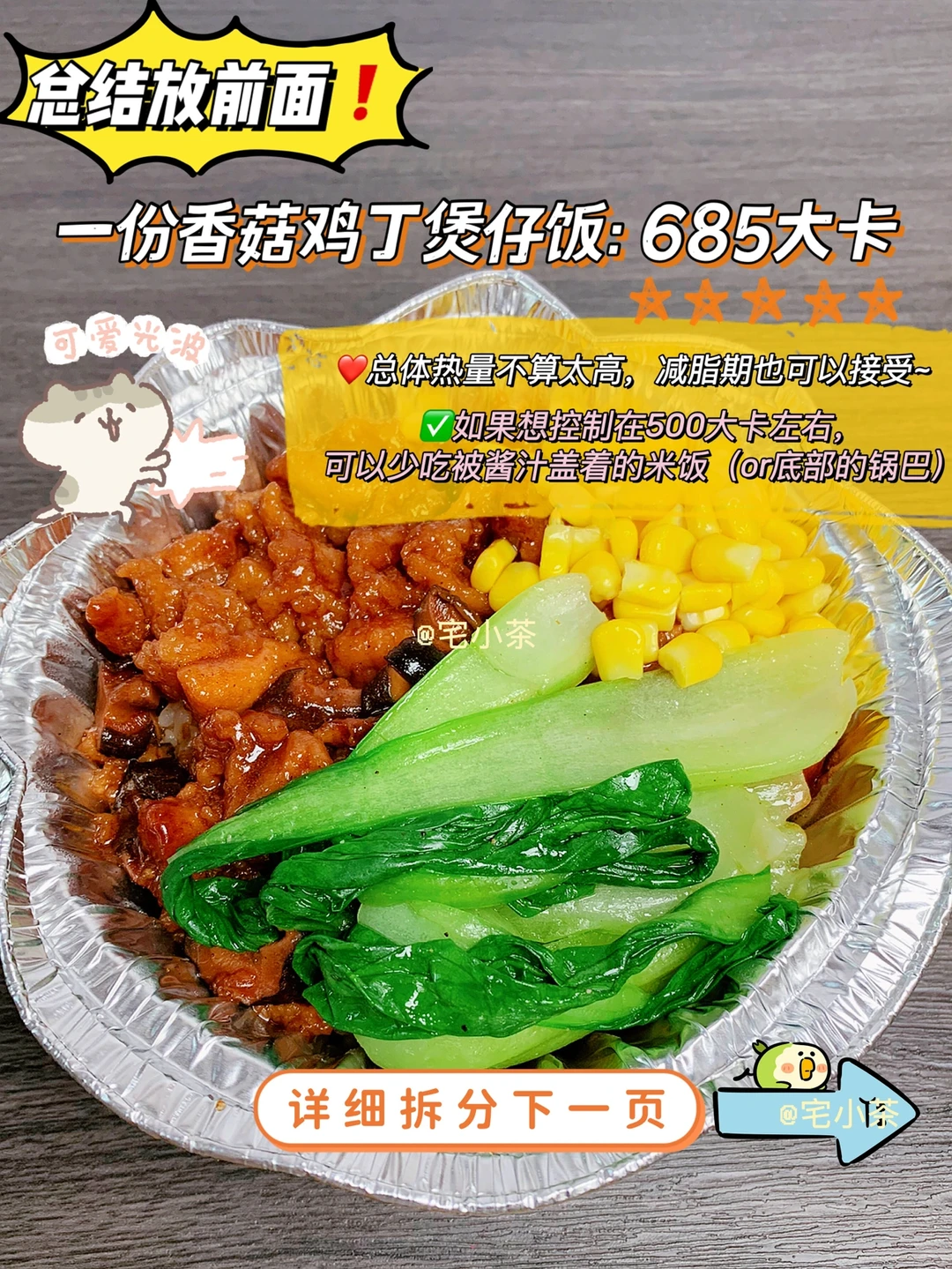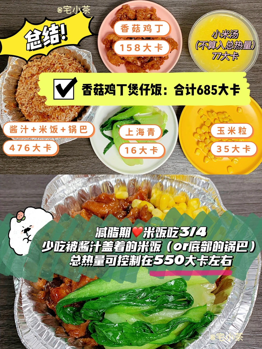 如果想控制在500大卡左右,可以少吃被酱汁盖着的米饭(or底部的锅巴)