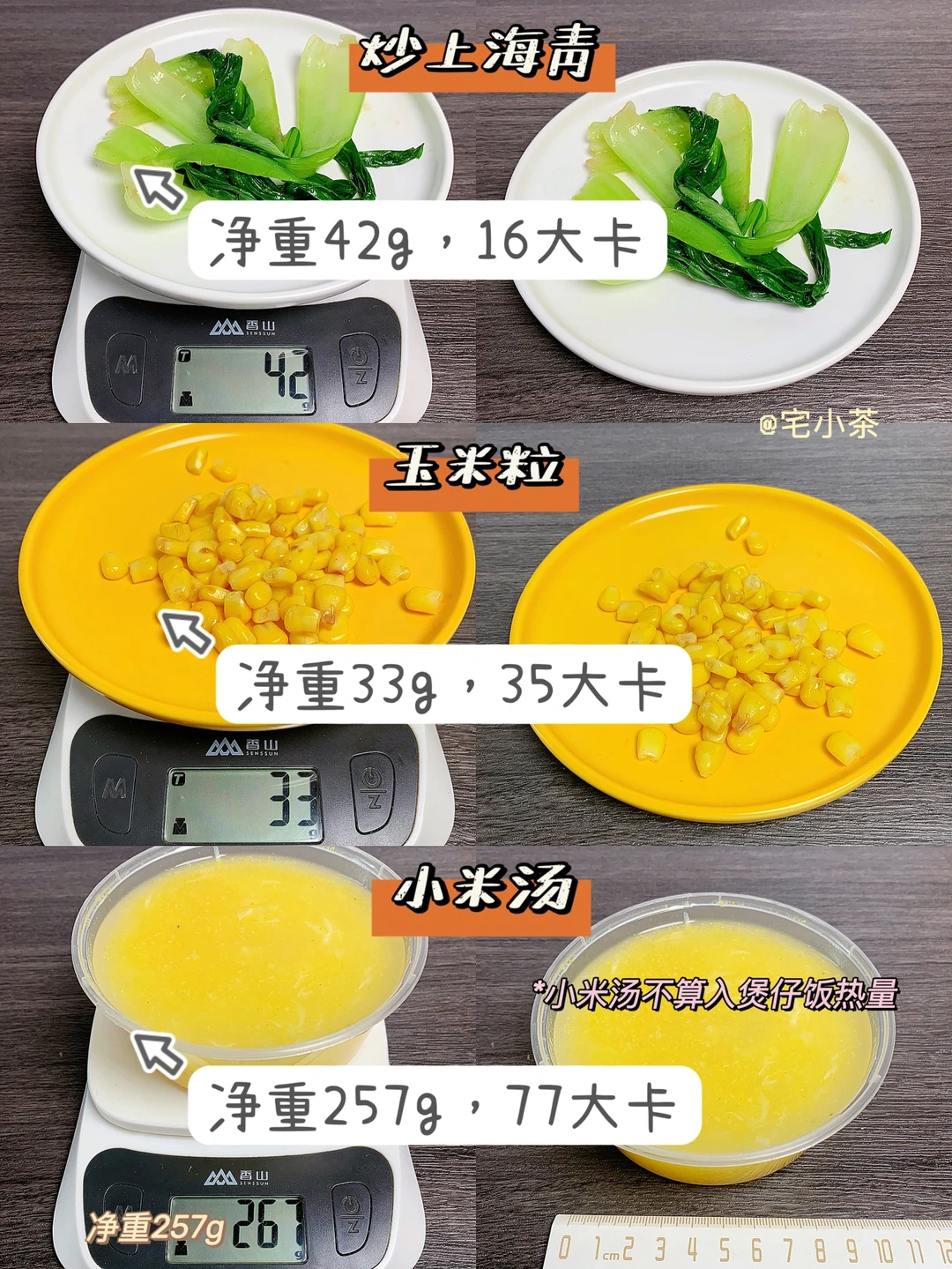 ➡️小米汤:净重257g,热量77大卡