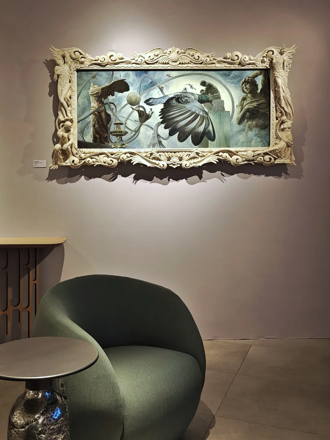 👉罗奇堡好久没办展了,这次的布展依旧是融入其家居场景中,氛围感是足够的,打光依旧是不太友好。不过毕竟不是专业画廊,不能要求太高了。