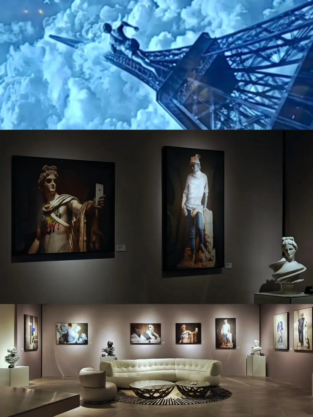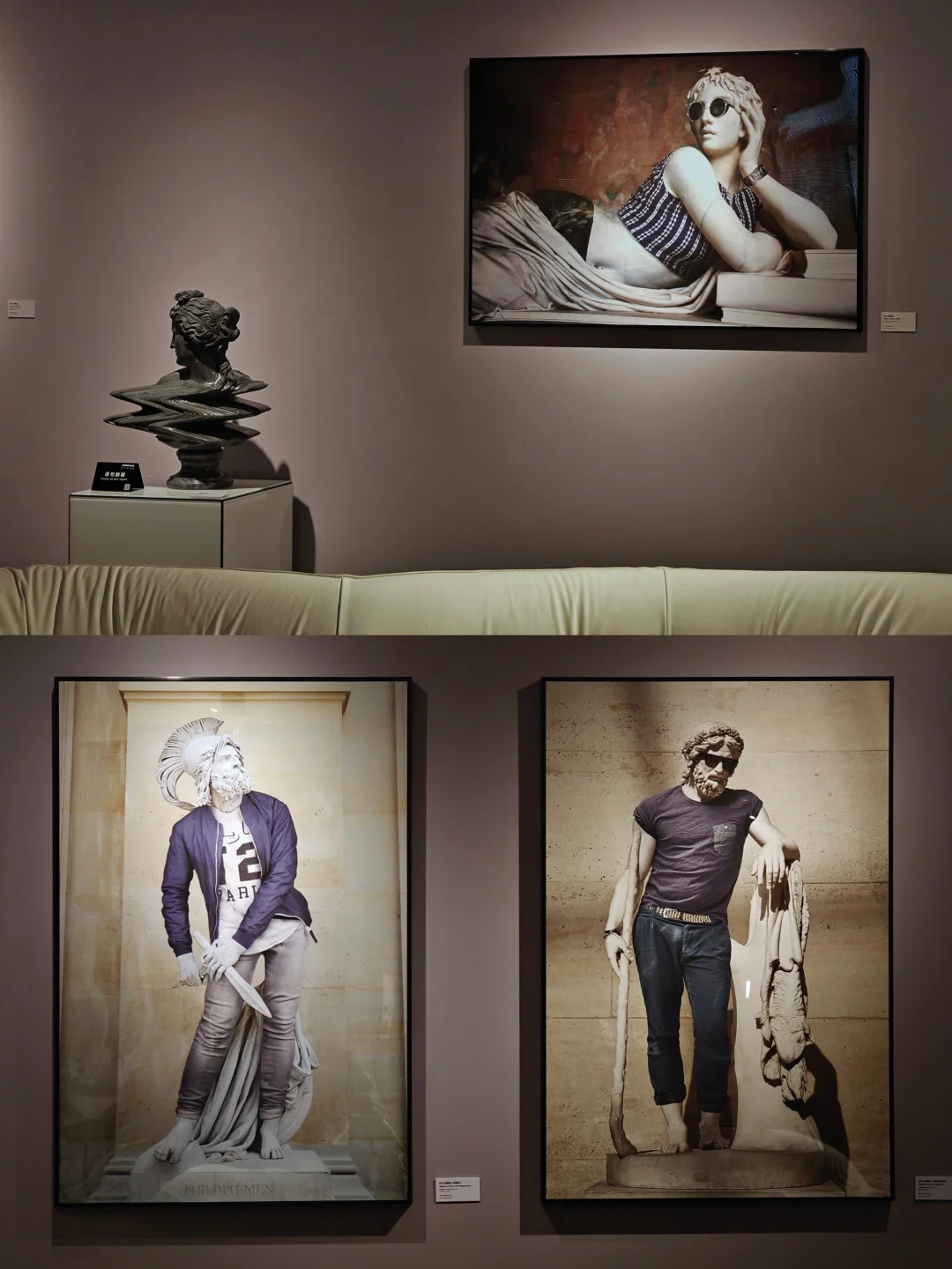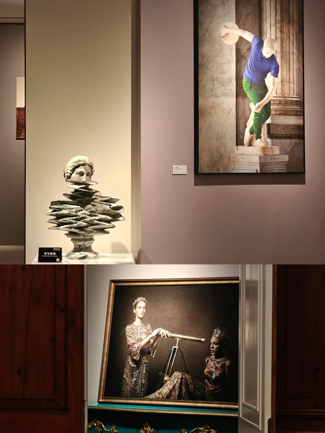 🖼️单独的法式古典风格展厅中的作品亦是戏仿名画的现代演绎性作品,看起来是时尚摄影但AI味儿十足。这bonus倒是本次展中蕞有看头的部分了。